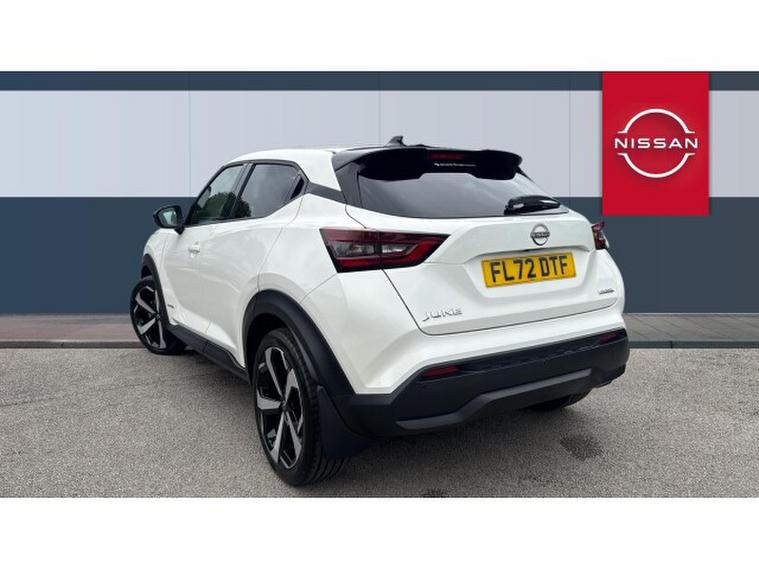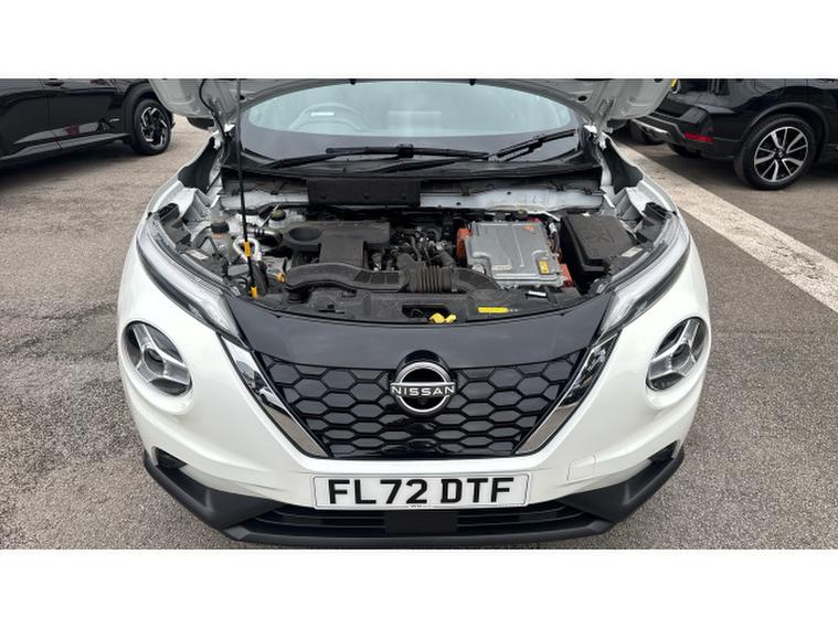 Nissan Juke 1.6 Hybrid Tekna 5dr Auto Hybrid Hatchback, , Here at Nissan Derby we are proud to offer this 2022 Nissan Juke Hatchback 1.6 Hybrid Tekna 5dr Auto, powered by a 1.6-litre petrol hybrid engine delivering responsive performance with excellent fuel efficiency, paired with an automatic gearbox for smooth driving, the Tekna trim comes with 19-inch alloy wheels, NissanConnect touchscreen infotainment with satellite navigation, Apple CarPlay and Android Auto, BOSE premium sound system, 360-degree around view monitor, front and rear parking sensors, heated front seats, keyless entry, adaptive cruise control, climate control and LED headlights, safety is top class with a 5-star Euro NCAP rating and features including autonomous emergency braking, lane keep assist, blind spot monitoring, rear cross traffic alert, ISOFIX and multiple airbags, all of our prices are checked daily to make sure they are the lowest in the market or we are open online or by telephone for internet enquiries up until 9pm Mon to Fri, Sat to Sun 9am to 5pm where we will be happy to answer any questions you may have, this Juke Tekna Hybrid is a stylish, efficient and fun-to-drive compact SUV that stands out from the crowd, you can place a 99 reservation fee to hold and reserve the car for 48 hours before someone else drives it away.