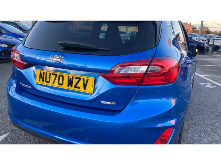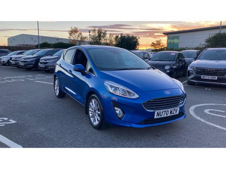 Ford Fiesta 1.0 EcoBoost Hybrid mHEV 125 Titanium 5dr Petrol Hatchback, , The 2020 Ford Fiesta 1.0 EcoBoost Hybrid mHEV 125 Titanium in metallic blue is a sophisticated, modern supermini that brings together efficiency, style, and premium features in a compact package. Its striking metallic blue paint complements the sharp lines, sporty front grille and carefully sculpted LED daylight running lights, giving the Fiesta a poised look whether parked or on the move.