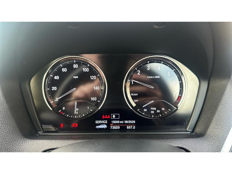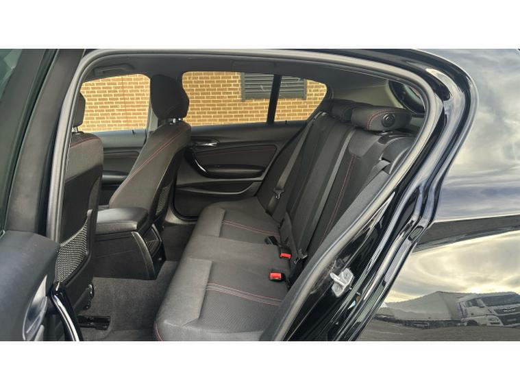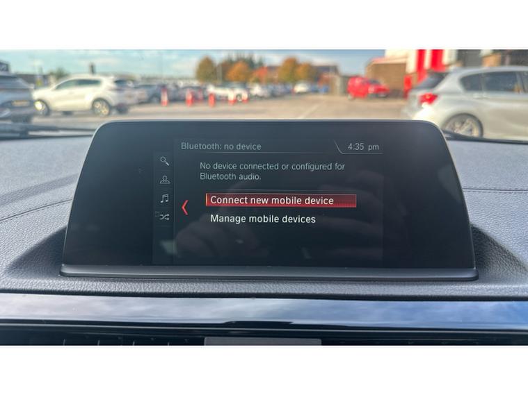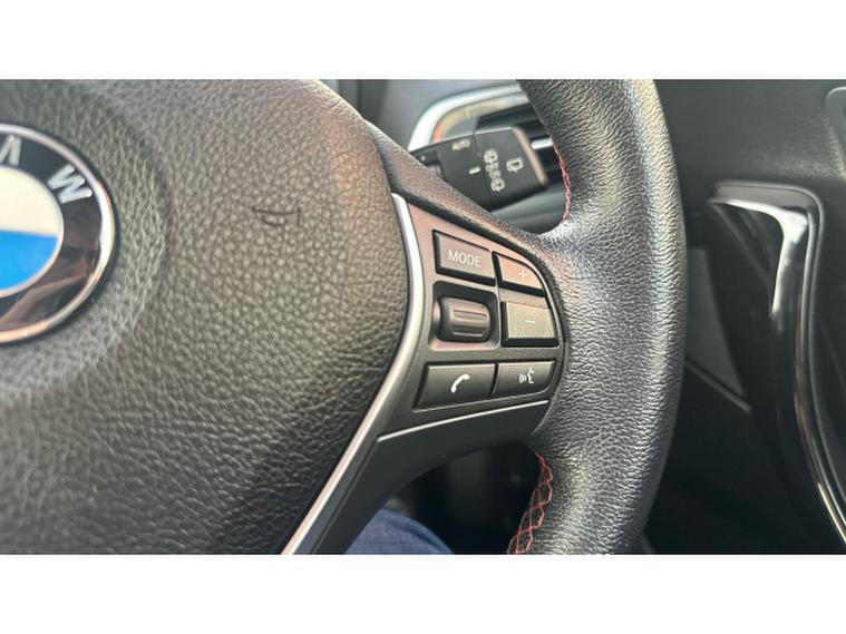 Inside, the cabin showcases BMWs trademark driver-focused layout with high-quality materials and subtle red Sport Line detailing. Supportive sport seats, automatic climate control, and ambient interior lighting create a comfortable, contemporary atmosphere. The iDrive infotainment system features a crisp display, intuitive rotary controller, Bluetooth connectivity, and DAB digital radio, while USB ports keep devices charged.