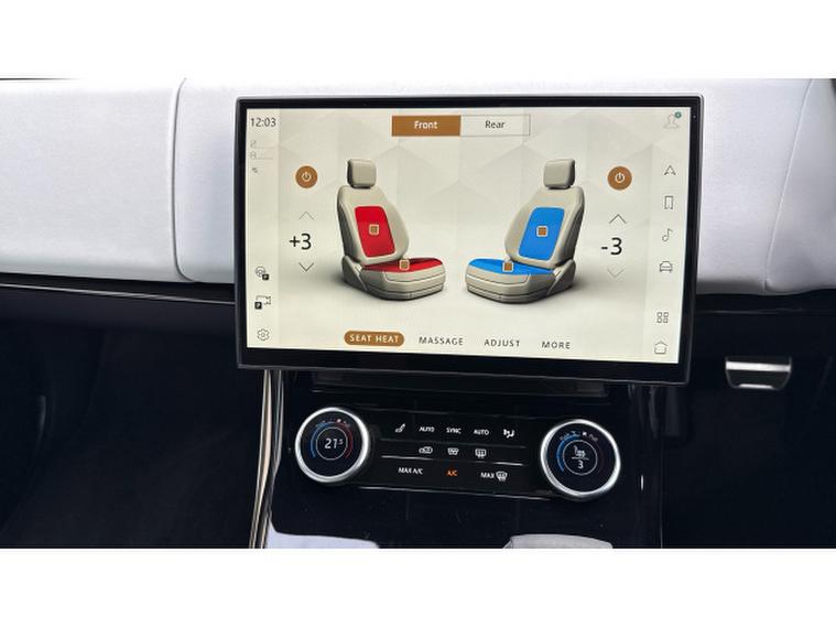 The Autobiography specification makes a bold statement on the road, enhanced by 23 Style 1075 Gloss Dark Grey Diamond Turned Wheels and a striking black contrast roof. A sliding panoramic sunroof fills the cabin with natural light, creating an airy and welcoming environment. Front fog lamps improve visibility in all conditions, while the head-up display keeps essential driving information in your line of sight for safer, more confident journeys.