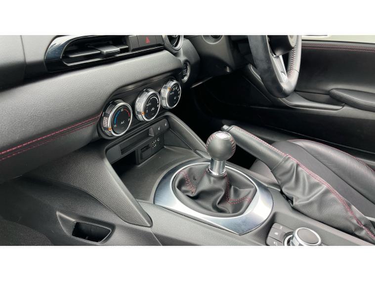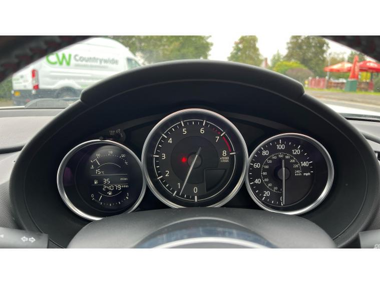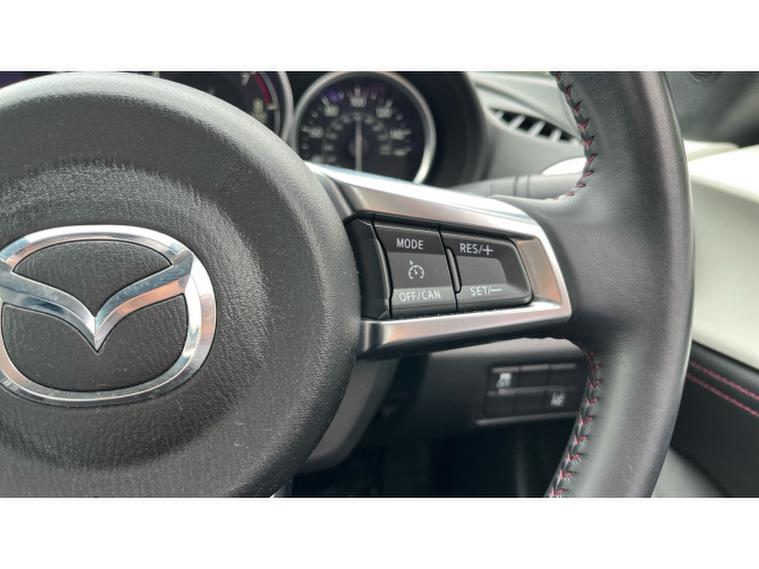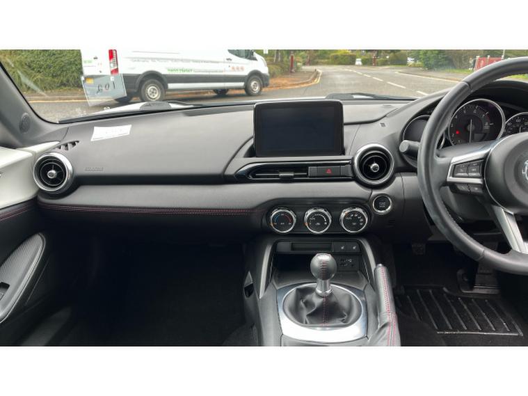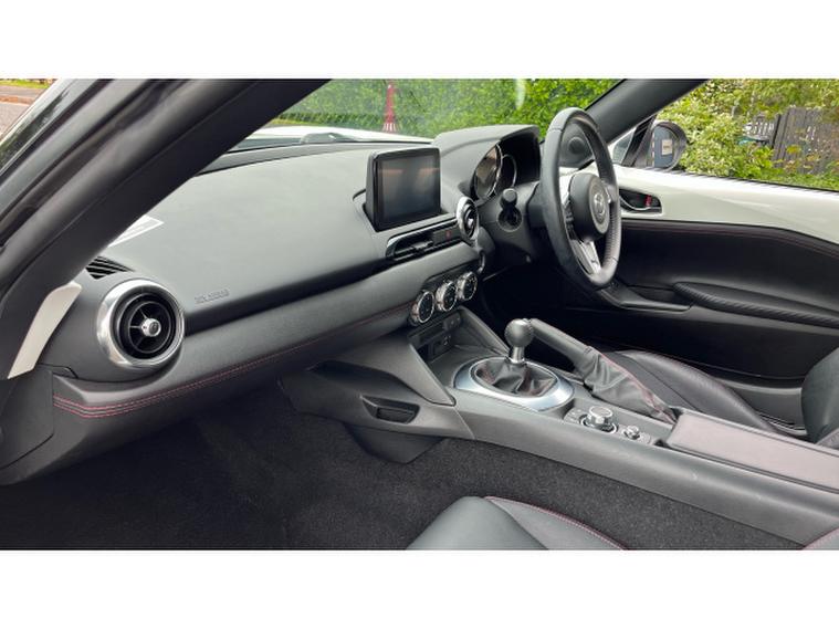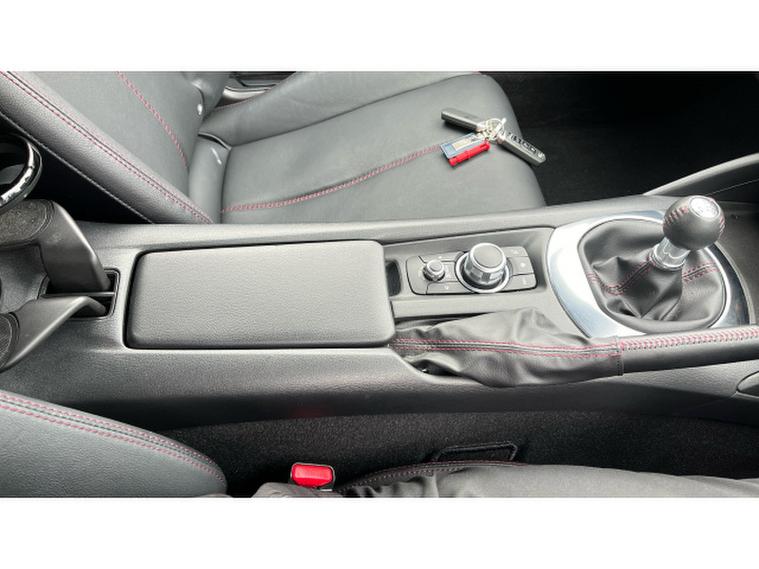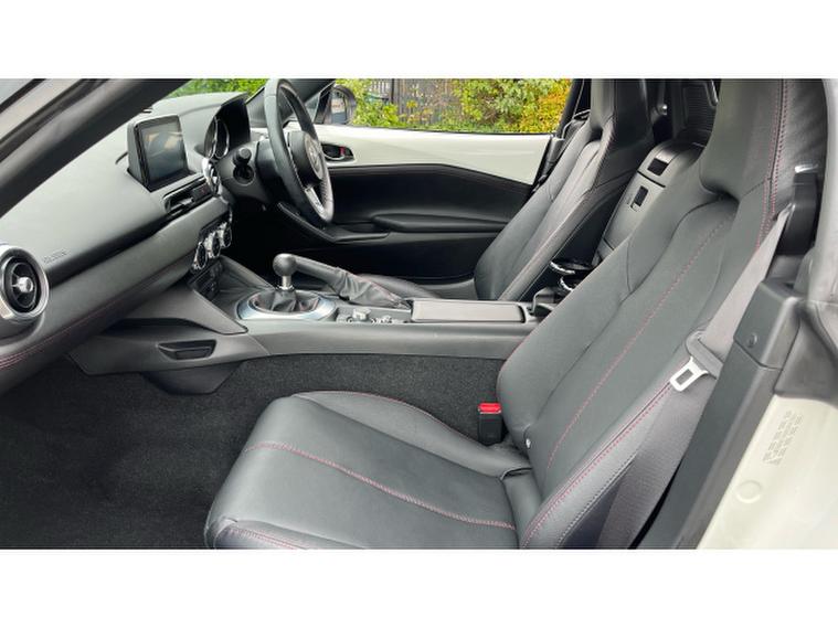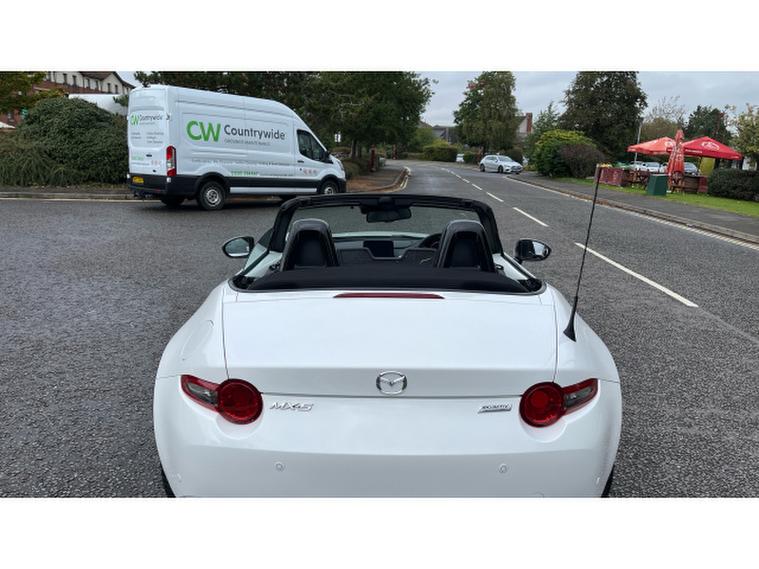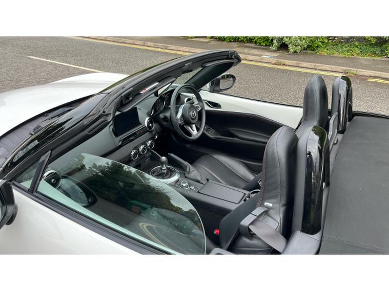 The Crystal White paintwork accentuates the MX-5s timeless silhouette, contrasting beautifully with its bold alloys and sharp styling lines. This is a car that turns heads roof up or down.
