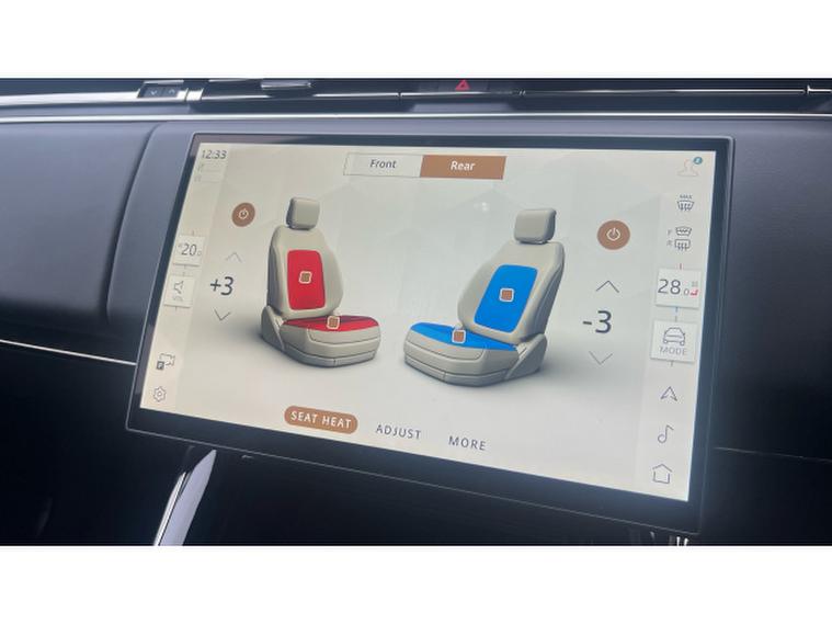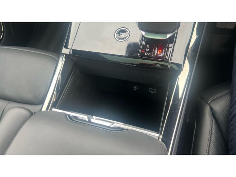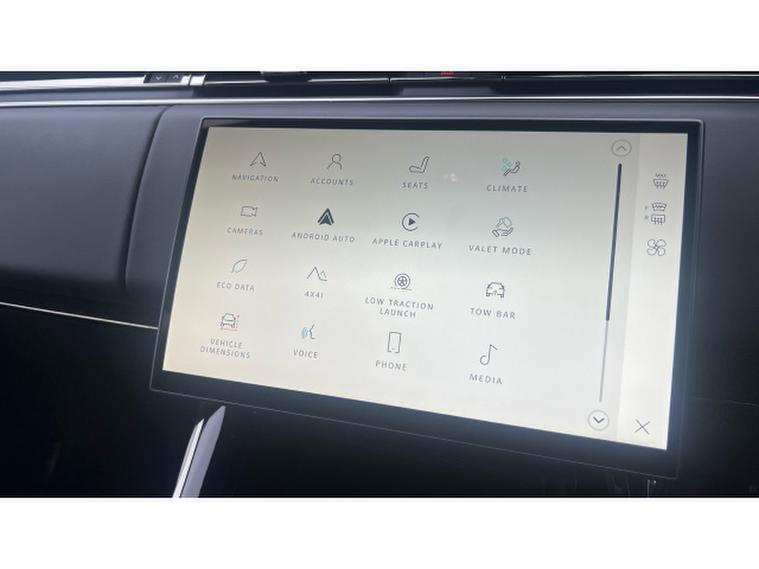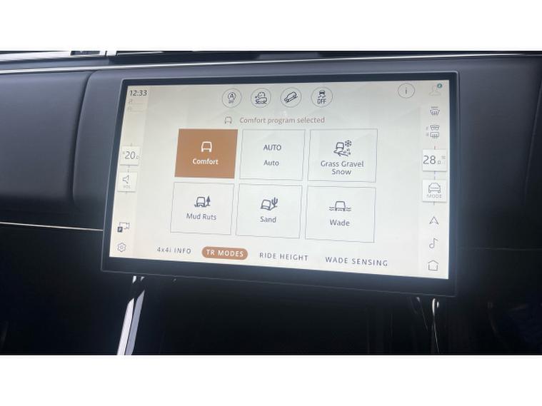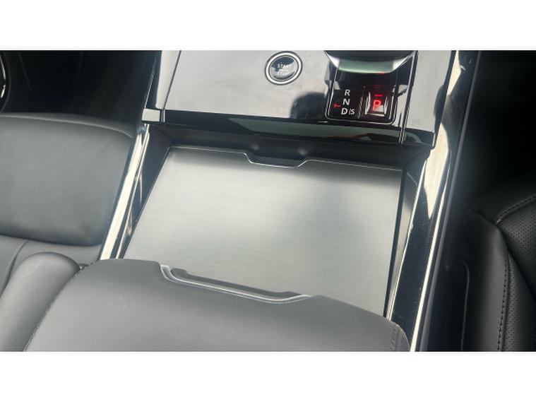 Inside, the ebony interior provides a sanctuary of calm and luxury. The craftsmanship is unmistakably Land Rover, from the precision stitching to the tactile surfaces that invite touch. The sliding panoramic roof bathes the cabin in light, accentuating the space and serenity that this vehicle is famed for. The front centre console refrigerator adds a delightful touch of practicality and indulgence, ensuring refreshments are always within reach.