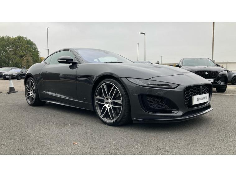 Jaguar F-Type 5.0 P450 Supercharged V8 75 2dr Auto AWD Petrol Coupe, , Vertu JLR Bolton are proud to offer this stunning Jaguar F-Type 5.0 P450 Supercharged V8 75 Coupe finished in Carpathian Grey premium metallic with Ebony grained leather interior. This one owner car has been immaculately looked after by its former owner and was serviced once prior to us taking ownership in March 2025 at 6419 miles. This car comes with a fantastic specification which includes touchscreen Sat Nav, heated leather seats, cruise control, dual zone climate control, parking sensors, reverse camera, steering wheel audio controls, LED headlights, auto lights and wipers, Apple car play, heated windscreen, DAB radio, Bluetooth, stop/start, push button start, sports mode, trip computer, electric windows and mirrors, remote central locking and finished with stunning alloy wheels. This car is ready to view, test drive and drive away today and comes as part of the Approved JLR programme which includes 12 months warranty, 12 months roadside assistance, MOT test warranty, and 165 multi point inspection as part of purchase.