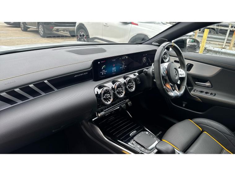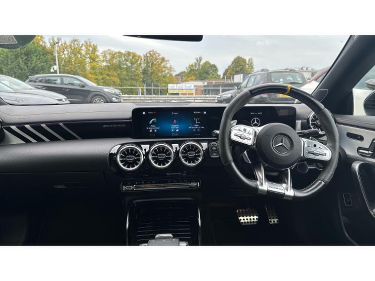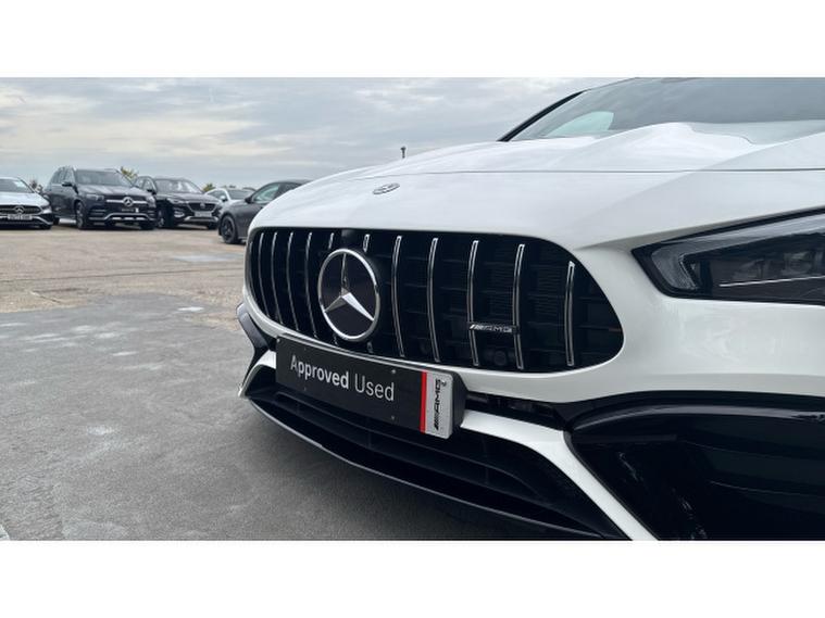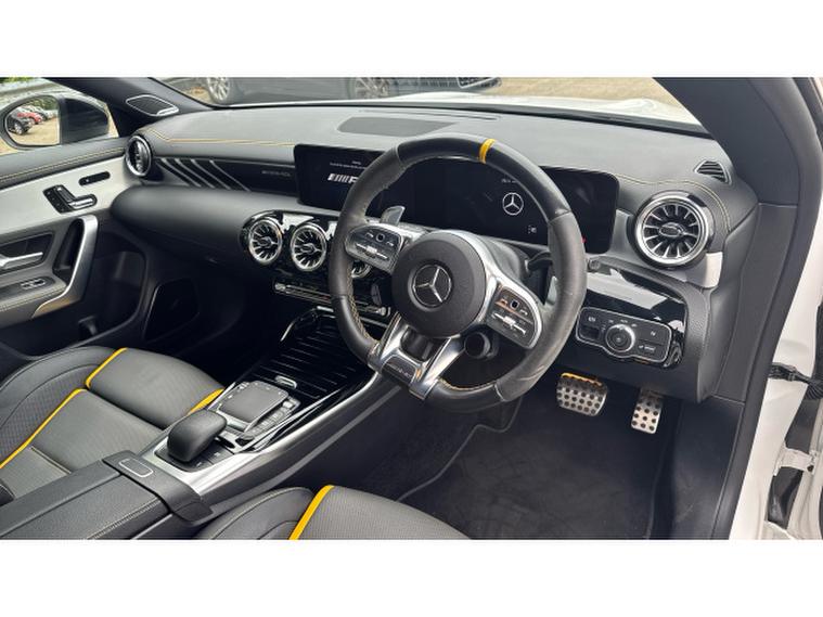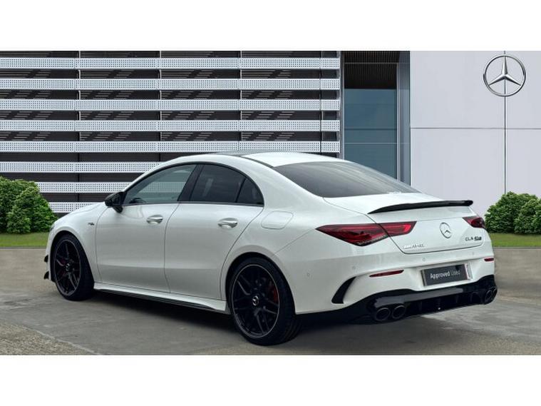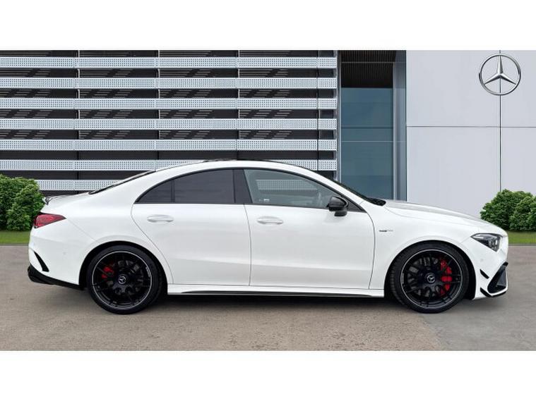 Mercedes-AMG CLA 45 S 4Matic+ Plus 4dr Tip Auto Petrol Saloon, , The Mercedes Benz CLA 45 AMG S Plus Coupe is a machine that takes everyday driving and transforms it into an event. Finished in striking Polar White and riding on bold 19 inch AMG alloys, this 2023 model oozes athletic intent before you even press the starter button. Beneath the bonnet lies a handcrafted AMG 2.0 litre engine producing an astonishing 421 horsepower, channelled through AMG SPEEDSHIFT DCT 8G and the 4MATIC plus system for breathtaking pace with total composure in all conditions.