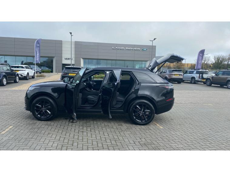 Land Rover Range Rover Velar 2.0 D200 MHEV Dynamic SE 5dr Auto Diesel Estate, , Very JLR Truro are proud to offer this 2024 Range Rover Velar 2.0 D200 MHEV Dynamic SE Auto, finished in sophisticated Santorini Black metallic with Ebony leather interior. A one-owner vehicle with full Land Rover service history, supported by manufacturers warranty until 2027. The Dynamic SE specification delivers refined luxury with standout features including 20-inch alloy wheels, Pixel LED headlights, sliding panoramic roof, 14-way heated electric memory front seats, Meridian Sound System, Pivi Pro with Connected Navigation, 3D Surround Camera, wireless device charging, powered tailgate, and keyless entry. The efficient D200 mild-hybrid engine blends performance with impressive economy, ensuring the Velar remains one of the most stylish and capable SUVs in its class.