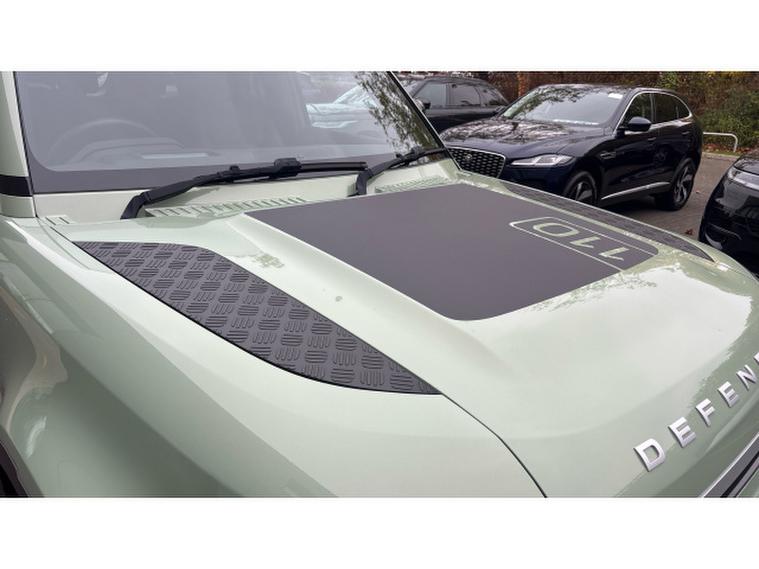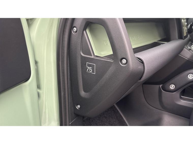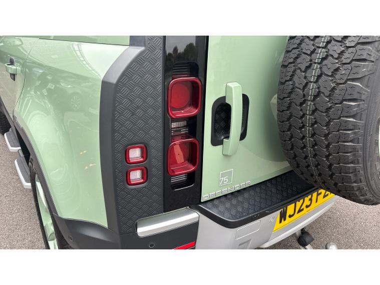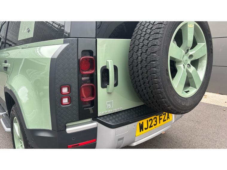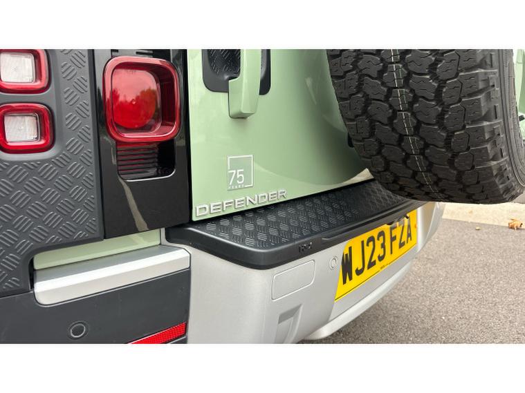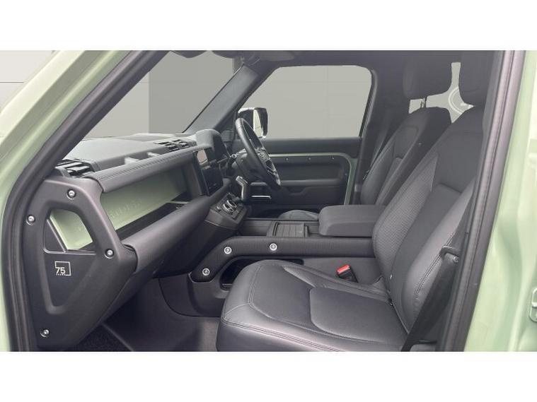 Land Rover Defender 3.0 D300 75th Limited Edition 110 5dr Auto Diesel Estate, , Boasting exceptionally low mileage for its year, this 2023 Land Rover Defender 110 D300 75th Limited Edition presents a remarkable opportunity. This Four Wheel Drive model, powered by a robust 3.0L Diesel Engine and meeting Euro 6 emissions standards, offers a compelling blend of capability and refinement. Its 75th Limited Edition trim ensures a distinctive presence, complemented by notable features such as Android Auto, a heated steering wheel for added comfort, and keyless entry for convenience. Navigating tight spots is made effortless with the 360 degree parking aid, while the Matrix LED headlights with signature DRL provide excellent visibility.