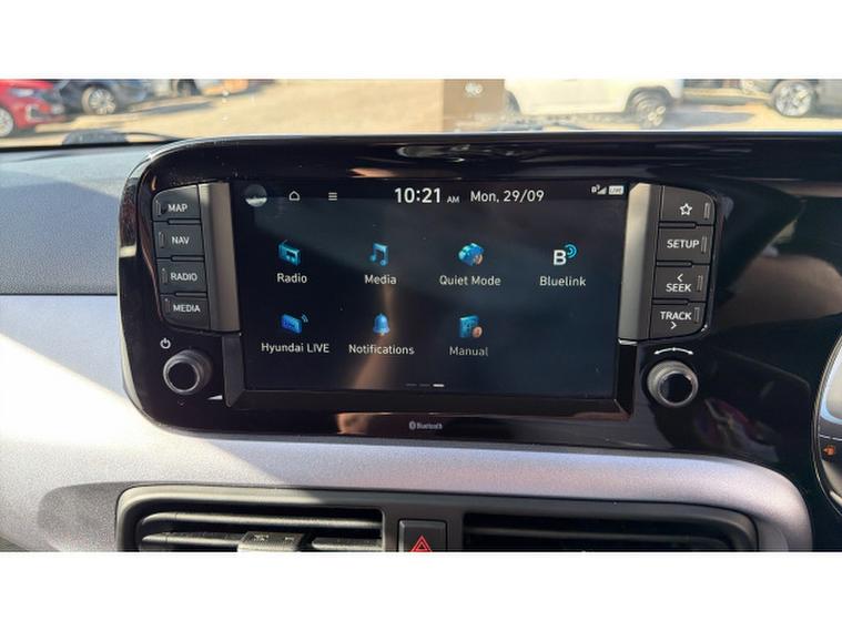 From the outside, the i10 stands out with its sleek lines, sporty stance, and bold front grille. The Premium trim adds extra flair with stylish alloy wheels, privacy glass, and LED daytime running lights, giving this compact hatchback a distinctive look that punches well above its weight.
