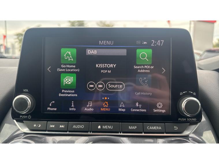 The N-Connecta trim enhances comfort and technology, featuring 17-inch alloy wheels, NissanConnect navigation with TomTom Traffic, a 12.3-inch full-colour digital instrument cluster, wireless phone charging, and front and rear parking sensors with a rearview camera. Inside, the cabin accommodates five passengers comfortably, with a luggage capacity of 422 litres with the rear seats up, offering ample space for everyday needs. Automatic climate control and a 6-speaker audio system with DAB, Bluetooth, and USB connectivity ensure a pleasant and connected journey.
