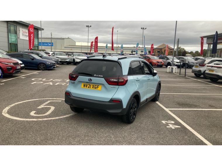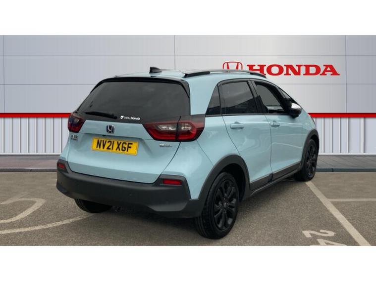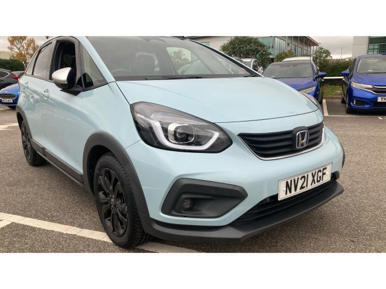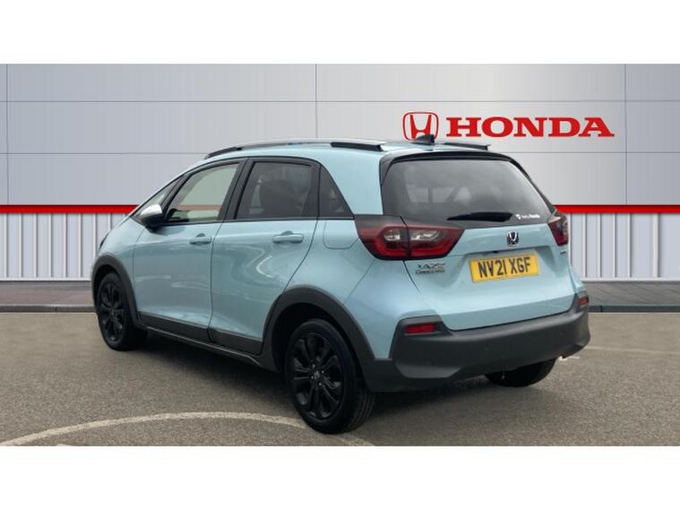 Honda Jazz 1.5 i-MMD Hybrid Crosstar EX 5dr eCVT Hybrid Hatchback, , The 2021 Honda Jazz Hatchback 1.5 i-MMD Hybrid Crosstar EX in blue is a refined, versatile hatchback combining hybrid efficiency with rugged styling cues and practical design. Its deep blue finish gives the car a fresh, lively look, accentuating its distinctive body cladding, stylish roof rails, and higher ride height that hint at its light crossover inspirations. Sleek LED headlights, bold alloy wheels, and contrasting touches around the bumpers and side skirts add a modern edge.