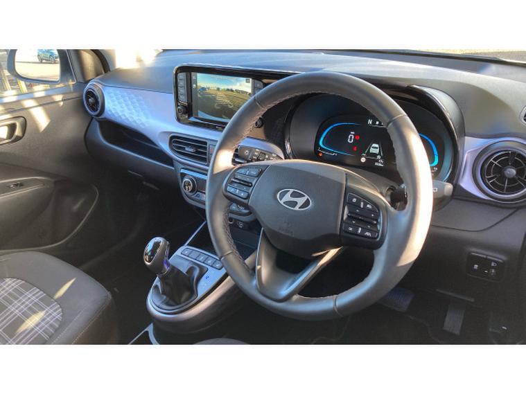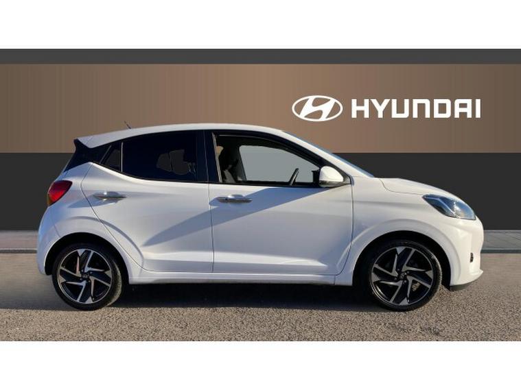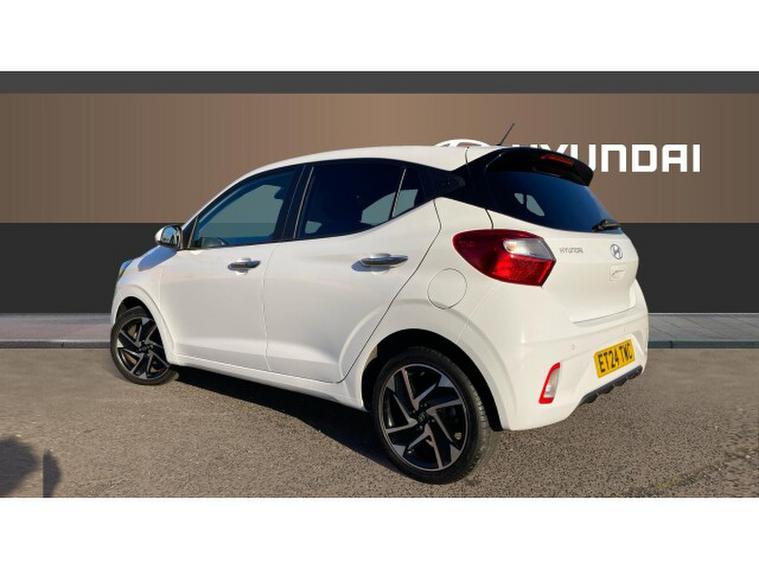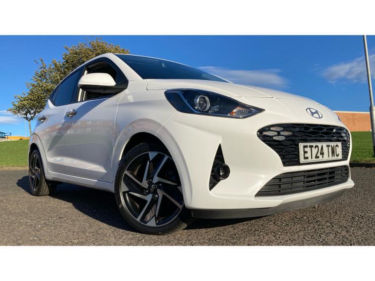 Hyundai i10 1.0 [63] Premium 5dr Auto [Nav] Petrol Hatchback, , The Hyundai i10 1.0 [63] Premium 5dr Auto [Nav] Petrol Hatchback is a smart, compact city car thats ideal for drivers seeking low running costs, modern features, and everyday practicality. Finished in clean white and registered in 2024 (24 plate), this nearly-new example has just 5, 344 miles on the clock and is in excellent condition. Powered by a 1.0-litre petrol engine producing 63bhp, its paired with a smooth automatic gearbox that makes city driving effortless. One of the standout benefits of this i10 is its low insurance group, making it a fantastic choice for first-time drivers, young motorists, or anyone looking to keep ongoing costs down. The Premium trim adds a range of desirable features including 15-inch alloy wheels, LED daytime running lights, rear parking sensors, electric folding mirrors, and cruise control. Inside, youll find a spacious and well-designed cabin with an 8-inch touchscreen infotainment system, satellite navigation, Apple CarPlay and Android Auto, air conditioning, and a leather-trimmed steering wheel. Safety equipment includes lane keep assist, forward collision warning, and hill-start assist for added peace of mind. Economical, well-equipped, and easy to drive, the i10 ticks all the right boxes. Pop in here at Hyundai Peterlee wed be happy to get you behind the wheel.