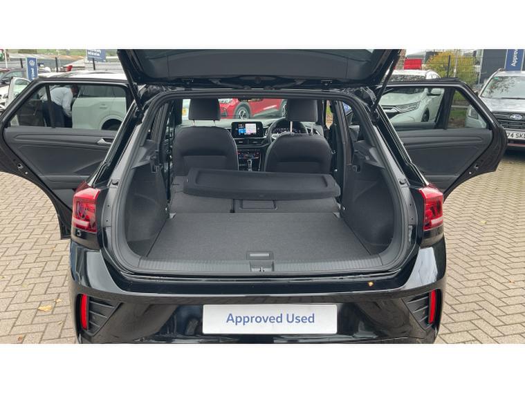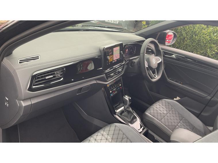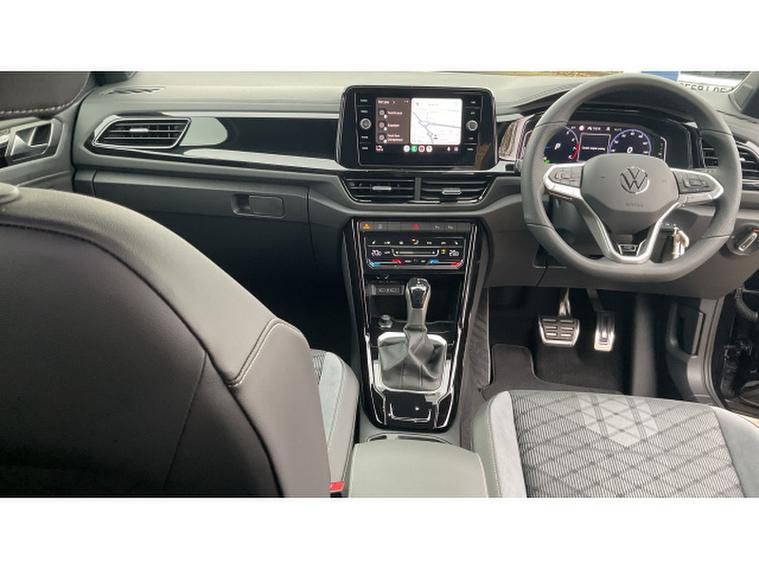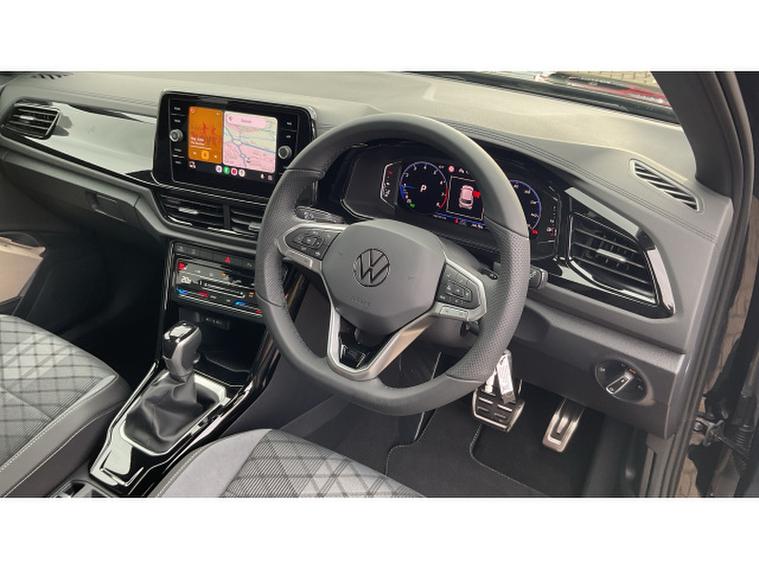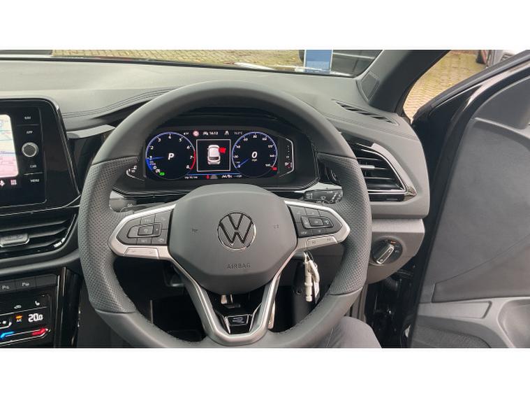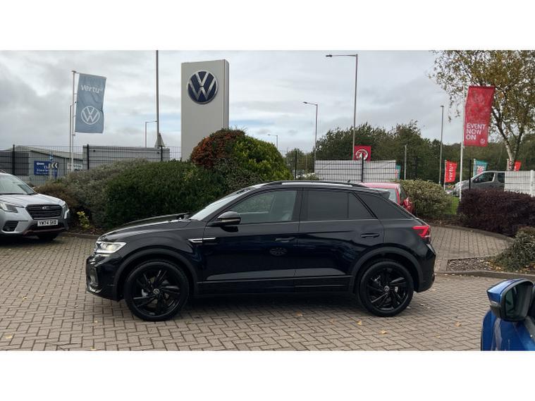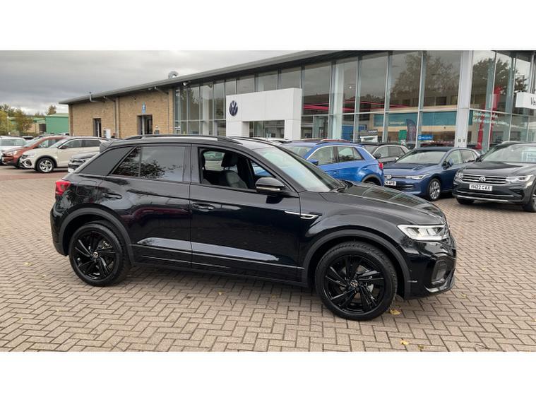 Volkswagen T-Roc 1.5 TSI R-Line 5dr DSG Petrol Hatchback, , This pre-registered delivery mileage DSG automatic T-Roc is available for immediate delivery, and it is absolutely stunning finished in Deep Black metallic paintwork with a black design pack, plus factory upgraded 18 inch black alloy wheels.