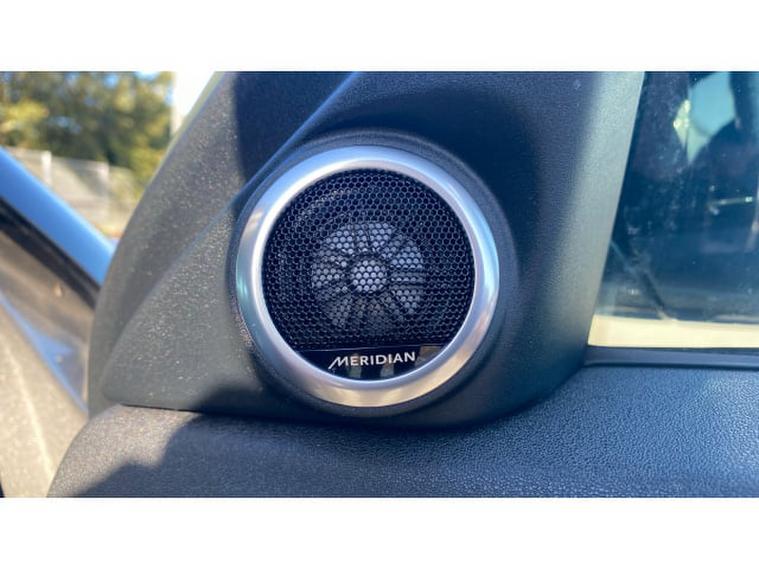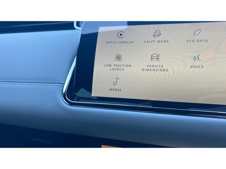 The R-Dynamic SE specification includes distinctive styling enhancements, 20-inch alloy wheels, Matrix LED headlights with signature DRL, flush deployable door handles, and a powered tailgate. Inside, the cabin features perforated Windsor leather seats with electric adjustment, ambient lighting, Touch Pro Duo infotainment with Pivi Pro, Meridian sound system, Apple CarPlay and Android Auto, a 3D surround camera, adaptive cruise control, lane keep assist, and dual-zone climate control.