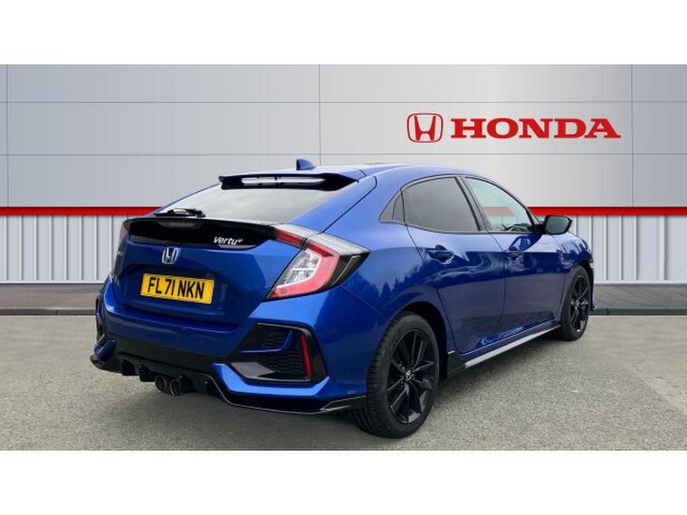 Honda Civic 1.5 VTEC Turbo Sport 5dr Petrol Hatchback, , Finished in eye-catching Brilliant Sporty Blue Metallic, this 2021 Honda Civic 1.5 VTEC Turbo Sport is a hatchback that truly stands out from the crowd. With its sleek design, responsive turbocharged engine, and Hondas legendary build quality, its the ideal combination of style, performance, and everyday practicality. The Sport trim enhances the Civics athletic character with 17-inch alloy wheels, privacy glass, and distinctive exterior styling that give it a bold, confident road presence. Step inside and youll find a driver-focused cabin equipped with everything you need a touchscreen infotainment system with Apple CarPlay and Android Auto, Bluetooth, USB ports, and a premium audio setup to keep you seamlessly connected and entertained on every journey. Under the bonnet, the 1.5 VTEC Turbo engine delivers punchy performance while remaining efficient, making it just as enjoyable on a winding country road as it is cruising on the motorway. Hondas finely balanced chassis and responsive steering give you confidence behind the wheel, while the advanced Honda Sensing suite, including adaptive cruise control, lane keep assist, and traffic sign recognition, ensures every drive is as safe as it is enjoyable. Despite its sporty looks, the Civic remains impressively practical. A spacious cabin, versatile rear seating, and a generous boot make it easy to fit into family life, while dual-zone climate control, parking sensors, and a reversing camera provide everyday comfort and convenience. By purchasing from Vertu Honda Plymouth, youre buying with complete peace of mind. Every car we sell is thoroughly inspected by our Honda-trained technicians, and we also offer part-exchange options, nationwide delivery, and personalised video walkarounds so you can explore the car in detail before visiting. This is more than just a hatchback, its a stylish, sporty, and versatile all-rounder finished in stunning Brilliant Sporty Blue Metallic. Dont miss out, contact us today to arrange your test drive.