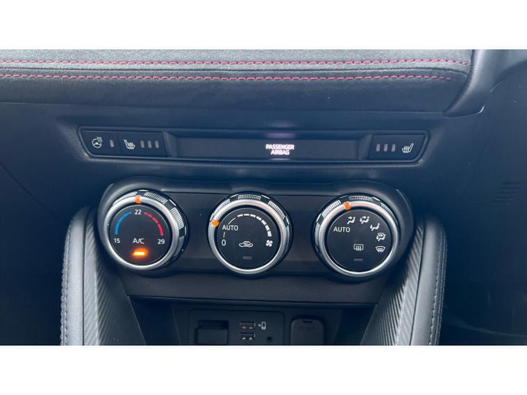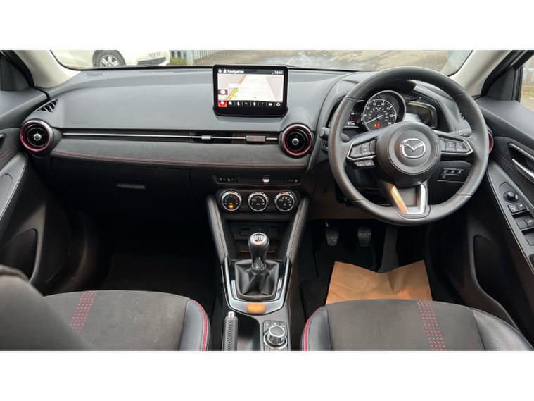 This Mazda 2 is equipped with the efficient 1.5-litre e-Skyactiv petrol engine combined with mild hybrid technology (MHEV), offering a smooth, economical, and environmentally conscious drive. The Homura Aka trim adds a premium touch with sporty styling cues, bold black alloy wheels, and elegant interior accents.