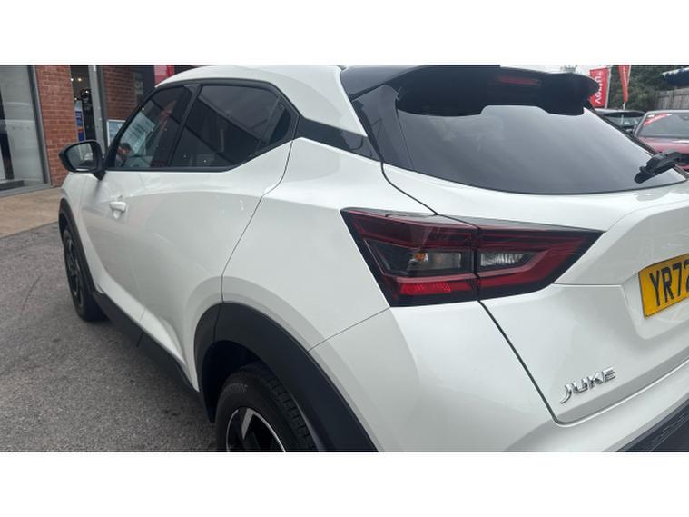 Nissan Juke 1.0 DiG-T 114 N-Connecta 5dr DCT Petrol Hatchback, , The Nissan Juke Hatchback 1.0 DiG-T 114 N-Connecta 5dr DCT is a bold and distinctive compact crossover that combines eye-catching design with modern technology and efficient performance. With just 6, 510 miles on the clock, this vehicle is in excellent condition and offers a near-new driving experience. Its 1.0-litre turbocharged petrol engine paired with a smooth dual-clutch automatic transmission delivers a lively and responsive ride, ideal for both city driving and weekend escapes. The N-Connecta trim brings a wealth of premium features, including a sleek touchscreen infotainment system with Apple CarPlay and Android Auto, a digital driver display, and intelligent keyless entry. The exterior stands out with its muscular lines, signature LED lighting, and sporty alloy wheels, while the interior offers a comfortable and connected environment with ample space and thoughtful design touches. Safety is well covered too, with advanced driver assistance systems like lane departure warning, rear-view camera, and traffic sign recognition.