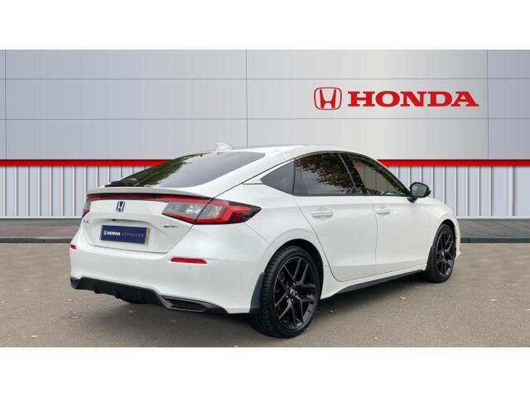 Honda Civic 2.0 eHEV Advance 5dr CVT Hybrid Hatchback, , Finished in Platinum white metallic paint. This Civic is where hybrid efficiency meets dynamic performance in a sleek, aggressive package. With its sleek coupe-inspired silhouette, cutting-edge hybrid powertrain, and premium features, the Civic Advance takes sophistication and driving excitement to the next level. Enjoy instant torque, whisper-quiet refinement, and impressive efficiency with no need to plug in. The CVT automatic transmission ensures a smooth, seamless drive thats as effortless as it is engaging. Step inside and experience modern craftsmanship at its best, heated leather & synthetic suede seats for ultimate comfort,