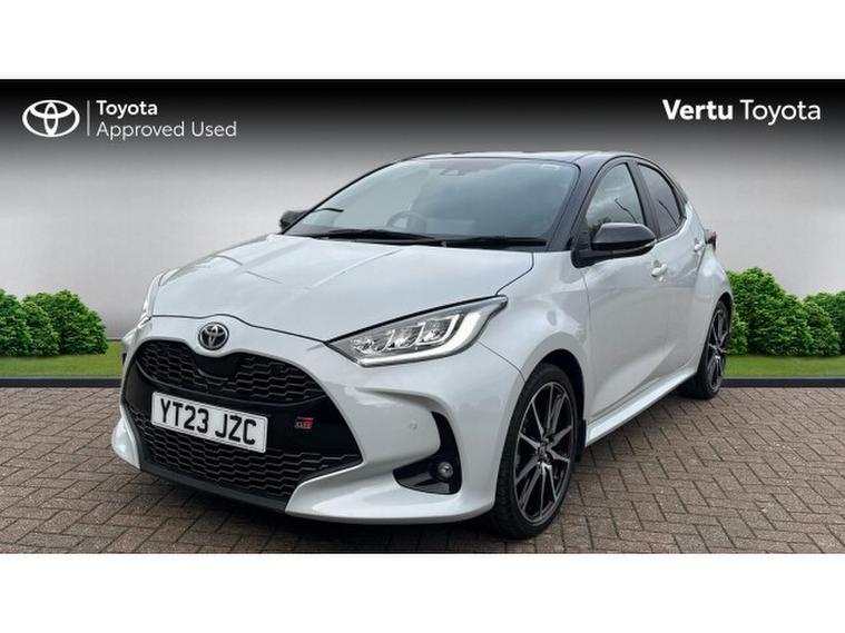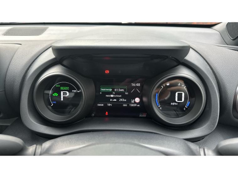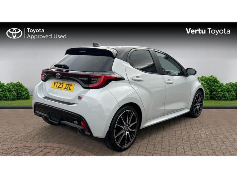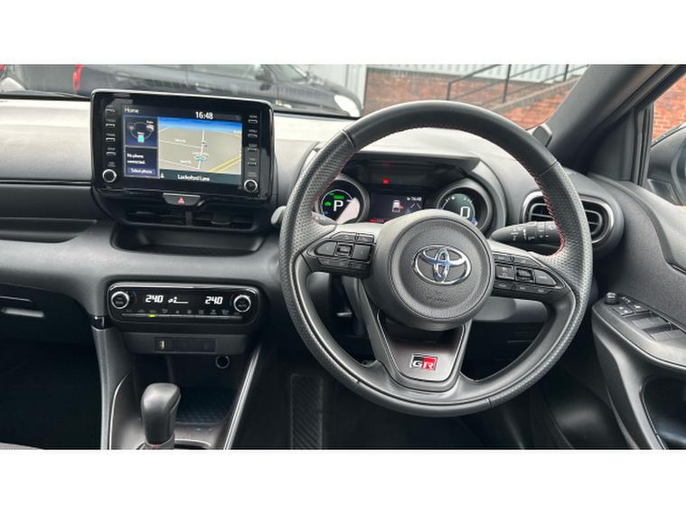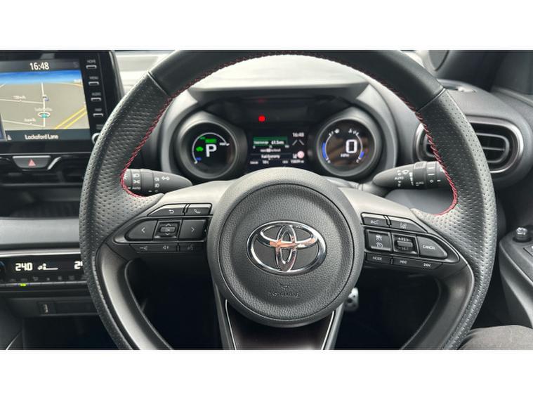 Toyota Yaris 1.5 Hybrid GR Sport 5dr CVT Hybrid Hatchback, , The Toyota Yaris GR Sport is a dynamic and sporty hatchback, designed for drivers who want style, performance, and city-friendly practicality. This Bi-tone model stands out with its distinctive two-tone exterior, giving it a bold and modern look.