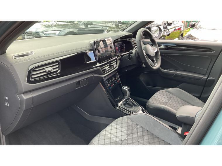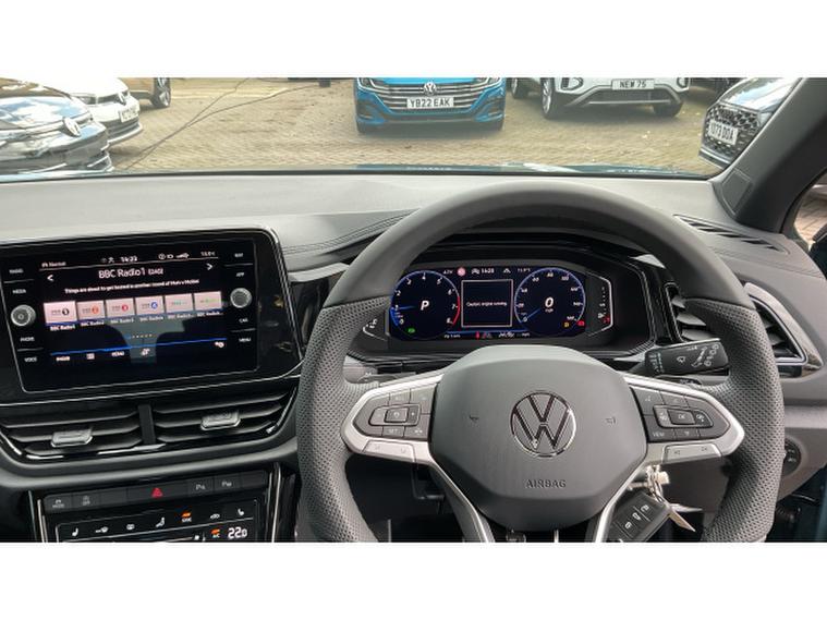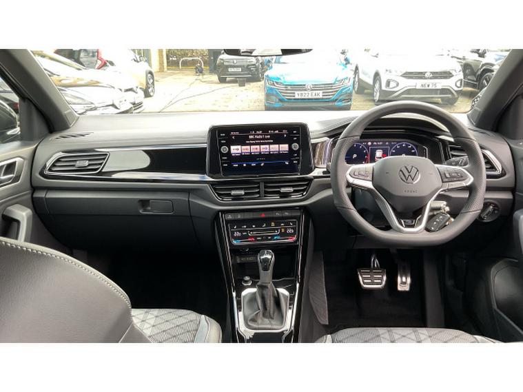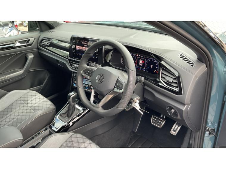 Volkswagen T-Roc 1.5 TSI Black Edition 5dr DSG Petrol Hatchback, , This pre-registered delivery mileage DSG automatic T-Roc is available for immediate delivery, and it is absolutely stunning finished in Petrol Blue metallic paintwork with a black design pack, plus factory upgraded 18 inch black alloy wheels.