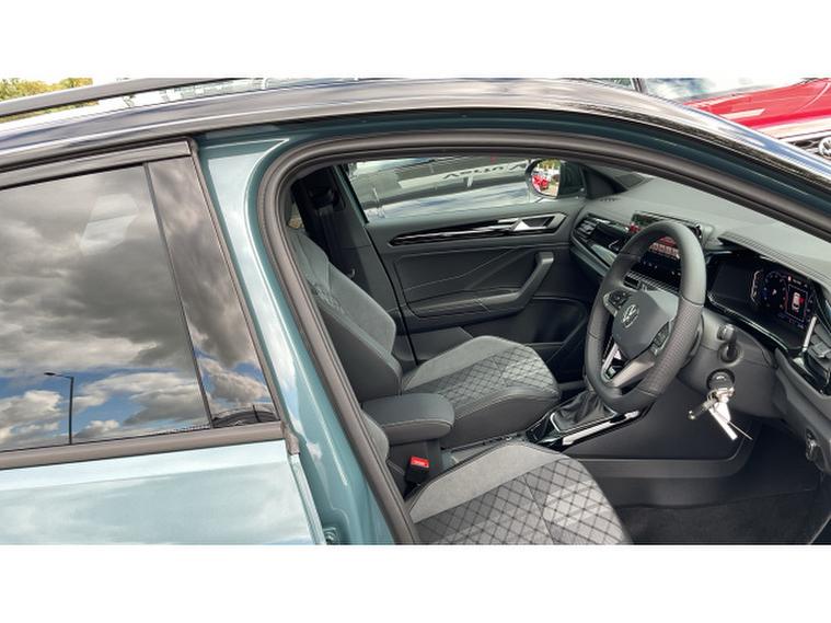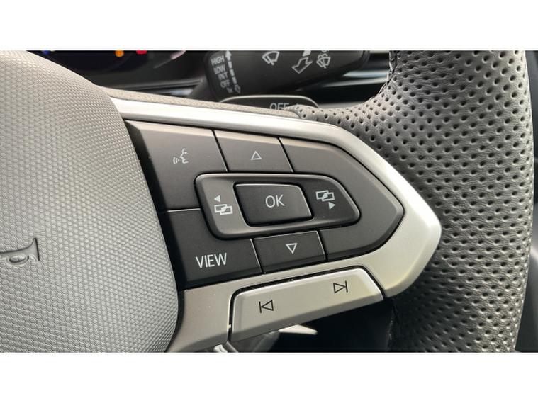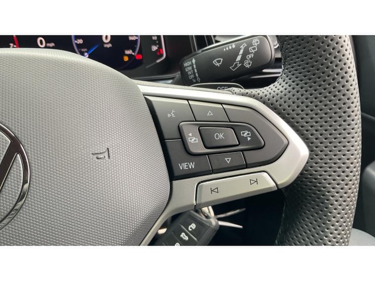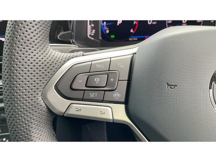 As standard, it comes with alloy wheels, touch screen media with satellite navigation, Apple Car Play, Android Auto, Bluetooth and DAB radio, front and rear parking sensors, heated R-Line sports seats, adaptive cruise control, lane assist, dual zone climate control with air conditioning, digital drivers cockpit, auto lights and wipers, front fog lights, Matrix LED lights, privacy glass, roof rails, and much more.