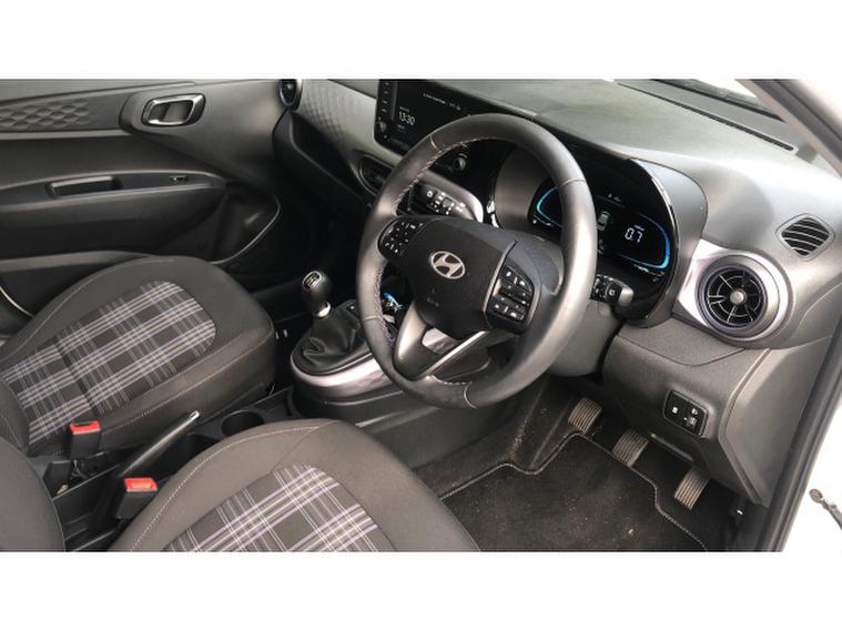 Hyundai i10 1.0 [63] Premium 5dr [Nav] Petrol Hatchback, , This 2024 Hyundai i10 Premium boasts exceptionally low mileage for its age, having covered just 3760 miles. This nearly new example is powered by an efficient 1.0L petrol engine, meeting Euro 6 emission standards. Inside, you'll find a host of desirable features designed for comfort and convenience, including Bluetooth connectivity with voice recognition, a heated steering wheel, and heated front seats. Navigating tight spaces is made easier with the inclusion of rear parking sensors.