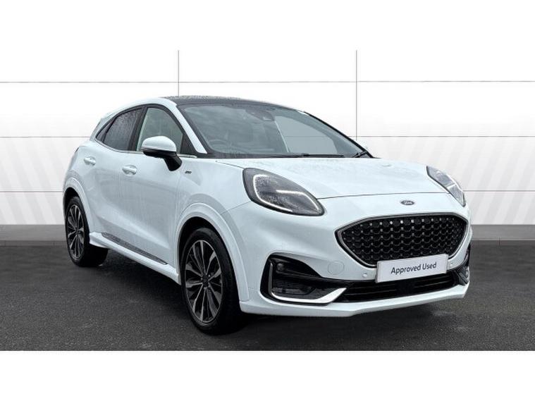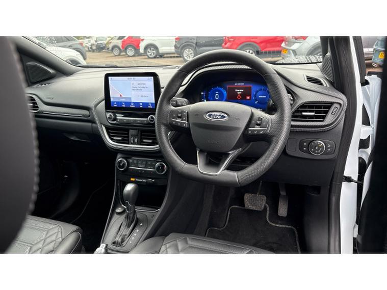 Ford Puma 1.0 EcoBoost Hybr mHEV 155 ST-Line Vignale 5dr DCT Petrol Hatchback, , Registered in July 2023 and with just 5, 142 miles, this Puma ST‑, Line Vignale presents almost as new and combines sporty crossover styling with premium Vignale refinement. The White exterior emphasises the athletic ST‑, Line design, with distinctive detailing and a confident stance on the road.