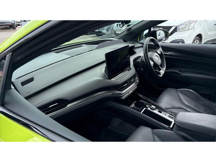 Inside, the Enyaq iV Coupe is a sanctuary of technology and convenience. The integrated satellite navigation system guides you with pinpoint accuracy, while adaptive cruise control ensures motorway journeys are relaxing and stress-free. Front and rear parking sensors make manoeuvring effortless, taking the worry out of tight spaces and urban parking. Every feature is designed to enhance comfort and simplify your daily drive.