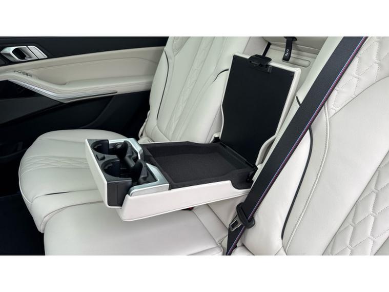 A standout feature of this X7 is the Sky Lounge Package, which includes a panoramic glass sunroof that fills the cabin with natural light and adds to the spacious, premium feel. The M Sport Pro Package and M Sport Exterior Styling enhance the SUVs athletic stance, complemented by M Sport Brakes with blue calipers and an M Sport Exhaust System for a dynamic driving experience.