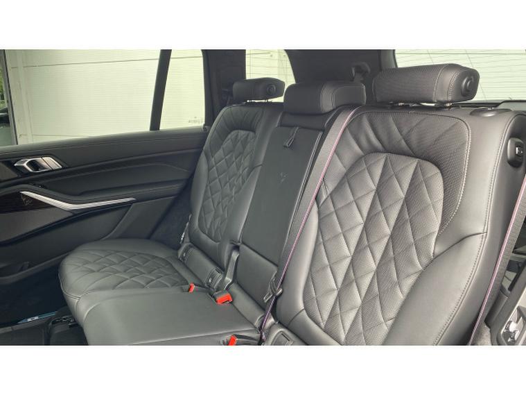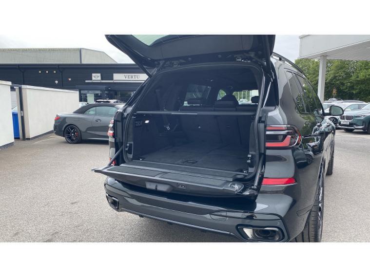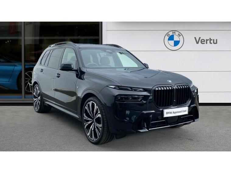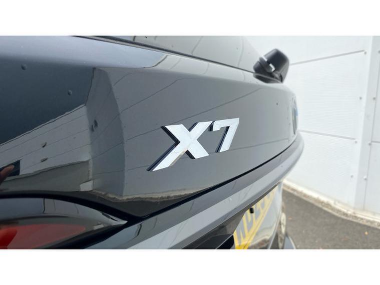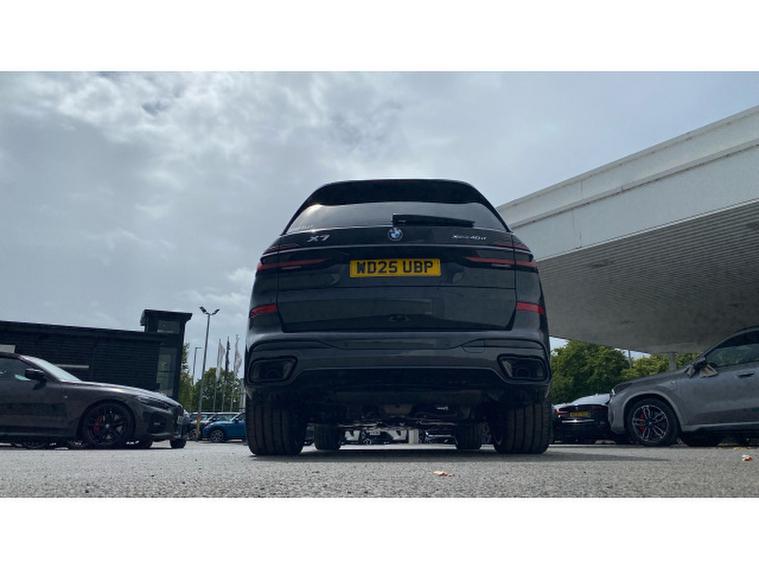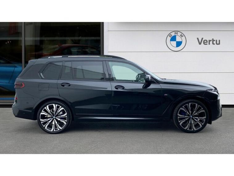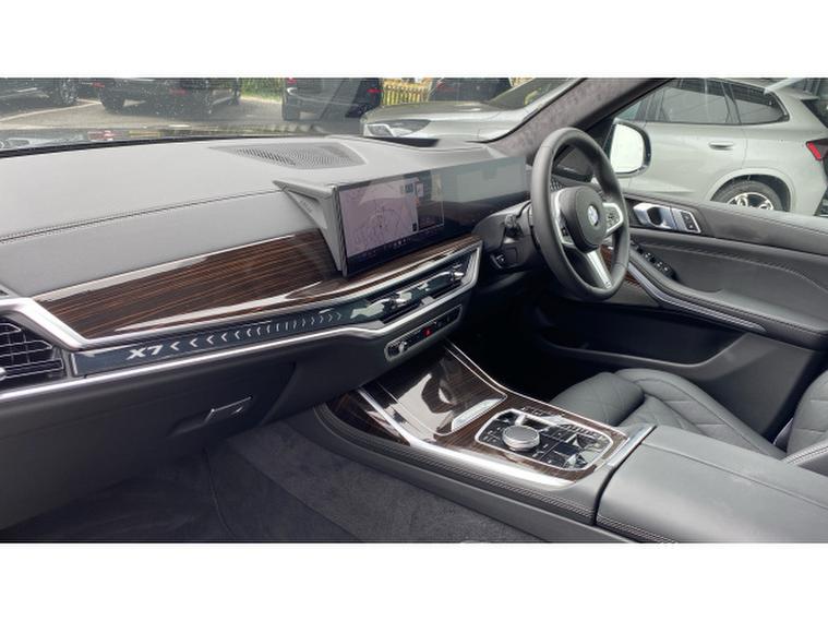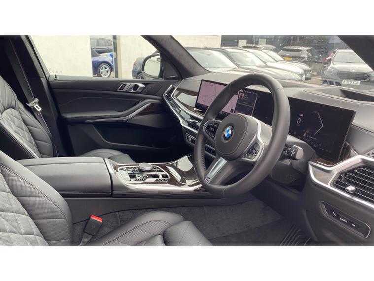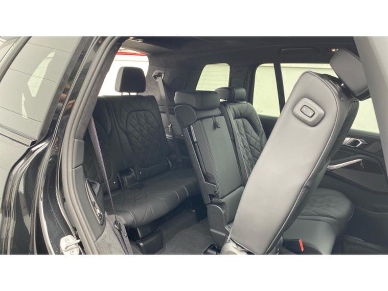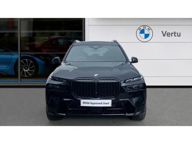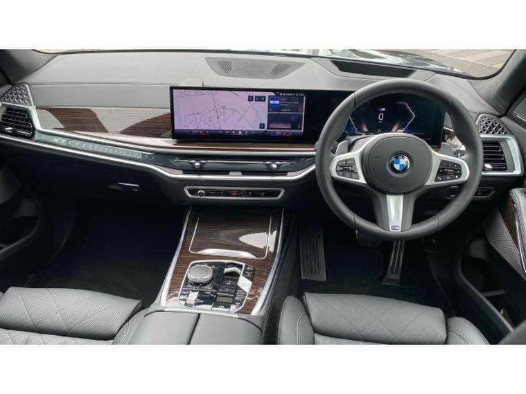 BMW X7 xDrive40d MHT M Sport 5dr Step Auto Diesel Estate, , Command attention everywhere you go with this striking BMW X7 xDrive40d M Sport, presented in the sleek Black Sapphire Metallic finish, sitting boldly on 23-inch alloy wheels that elevate its already imposing stance. Inside, you're welcomed by Black Sensafin Upholstery – a high-quality, leather-like material offering comfort and durability, perfectly complementing the refined interior.