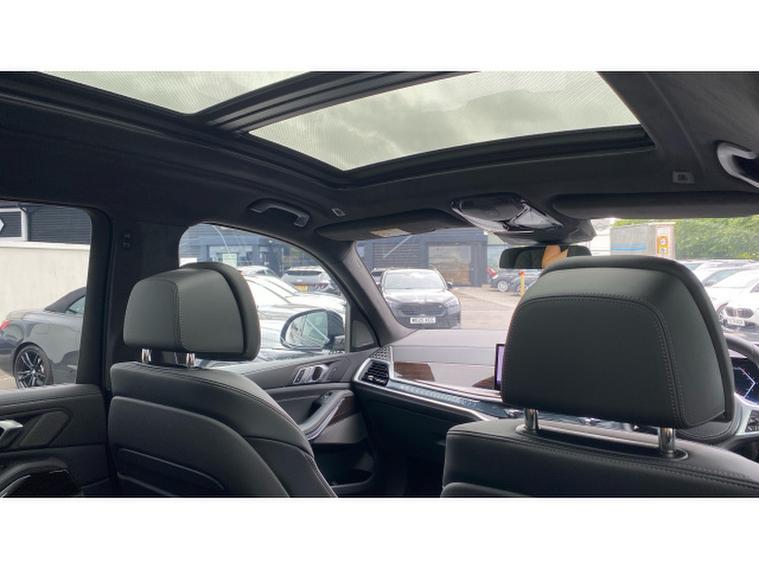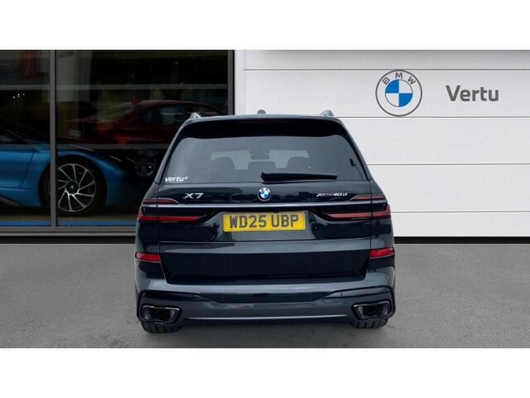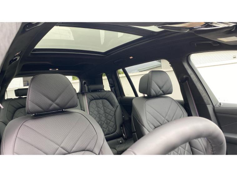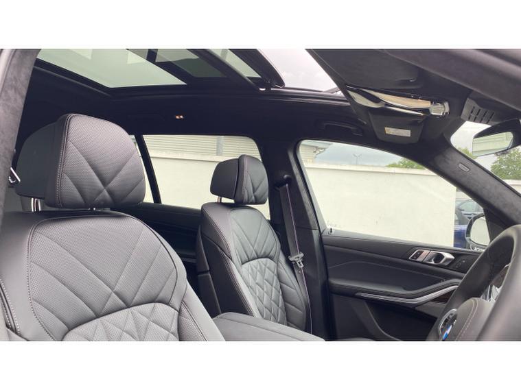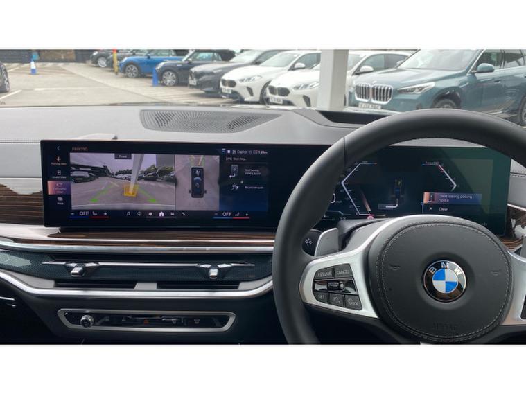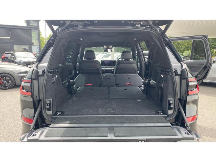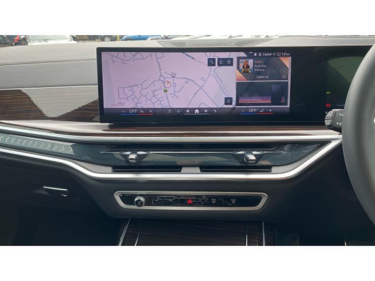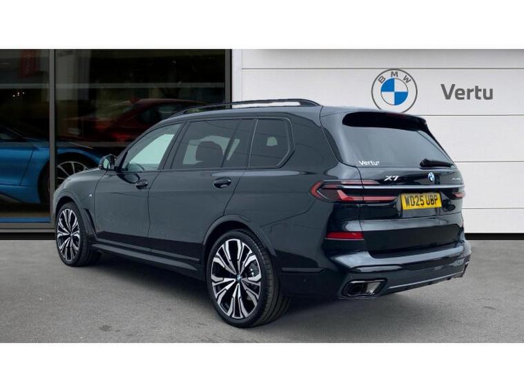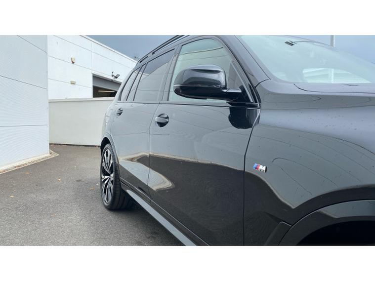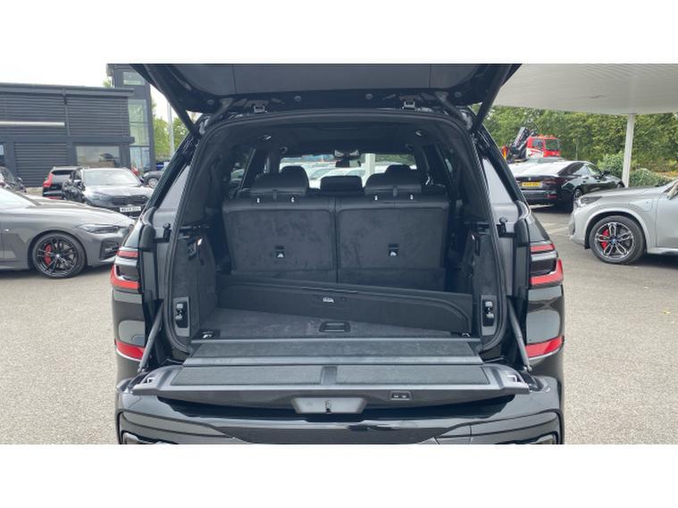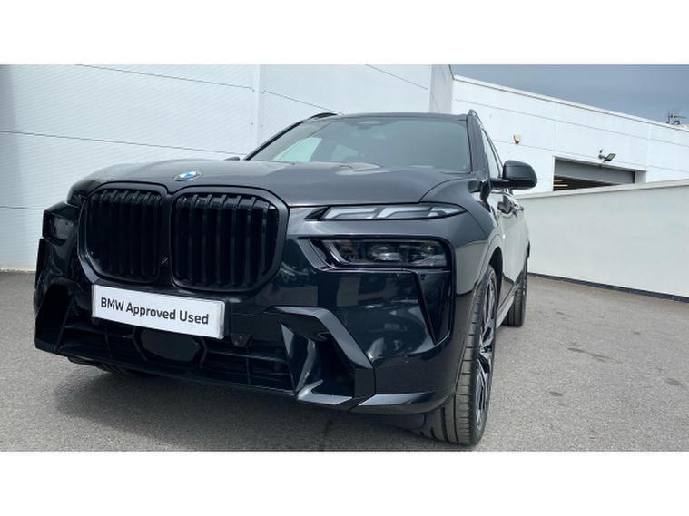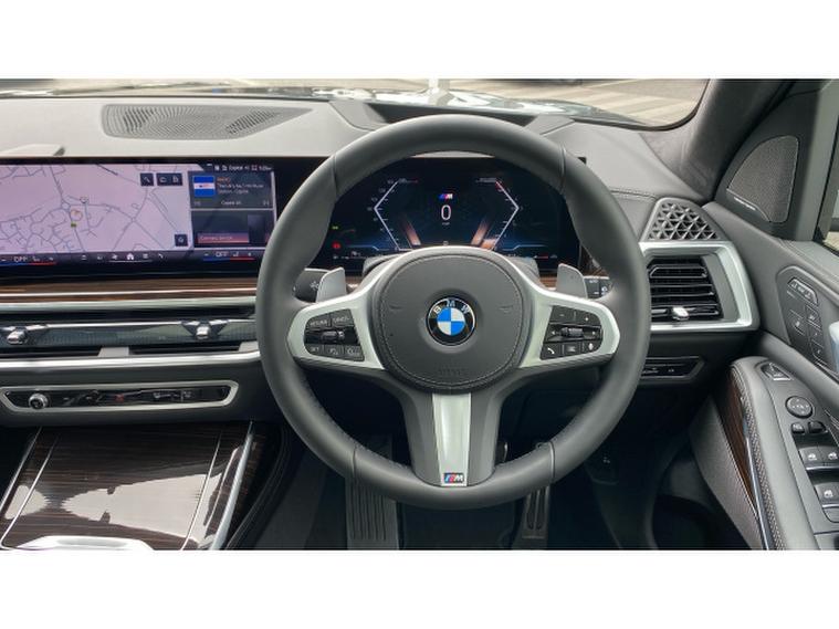 BMW X7 xDrive40d MHT M Sport 5dr Step Auto Diesel Estate, , Command attention everywhere you go with this striking BMW X7 xDrive40d M Sport, presented in the sleek Black Sapphire Metallic finish, sitting boldly on 23-inch alloy wheels that elevate its already imposing stance. Inside, you're welcomed by Black Sensafin Upholstery – a high-quality, leather-like material offering comfort and durability, perfectly complementing the refined interior.
