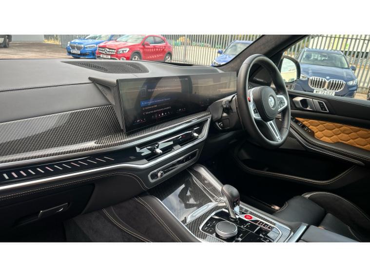 BMW X5 M xDrive X5 M Competition 5dr Step Auto Petrol Estate, , Available now is an extraordinary 2025 BMW X5 M Competition presented in the sleek Black Sapphire finish, perfectly complemented by a luxurious interior featuring a Black Full Merino and Alcantara leather combination. With only 10, 366 miles recorded, this performance SUV blends breathtaking power with everyday practicality and exceptional comfort, making it the ultimate choice for drivers who demand refinement and adrenaline in equal measure.