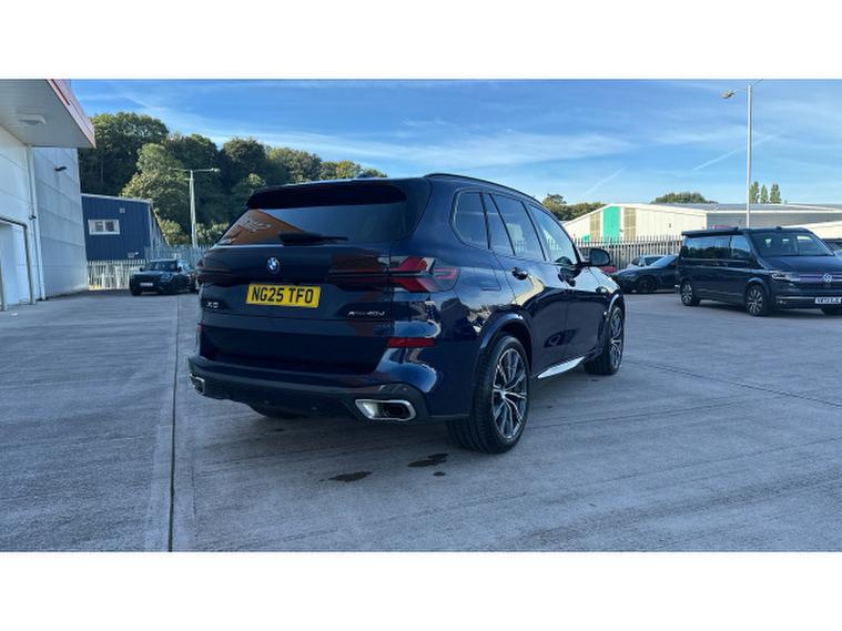 BMW X5 xDrive40d MHT M Sport 5dr Auto Diesel Estate, , Presenting the remarkable 2025 BMW X5 xDrive40d M Sport, finished in the captivating Tanzanite Blue metallic paintwork and complemented by a luxurious Ivory White and Black Extended Merino Leather interior. This commanding SUV blends dynamic M Sport styling with exceptional comfort, advanced technology, and powerful performance, making it a perfect choice for those seeking both refinement and capability. When you choose to buy from Vertu BMW Exeter, you can do so with total confidence. Every Approved Used BMW benefits from 12 Months BMW Approved Warranty, 12 Months BMW Roadside Assistance, 12 Months MOT, and a full service history, ensuring your vehicle is prepared to the highest standards. Our manufacturer-trained technicians carry out rigorous inspections and servicing, meaning you can enjoy complete peace of mind alongside outstanding customer care. At Vertu BMW Exeter, we believe in delivering a tailored experience, so we invite you to contact our expert team. We will happily provide a personalised video presentation of this stunning BMW X5, allowing you to explore every detail from the comfort of your home, as well as answer any questions you may have. This particular X5 is equipped with an array of impressive features designed to enhance every journey. The Sky Lounge Panoramic Glass Sunroof floods the cabin with light by day and offers a star-like illumination by night, the Driving Assistant provides intelligent support to help keep you safe and confident on the road, and the Heat Comfort System ensures optimal warmth for those colder days. Experience luxury, innovation, and driving pleasure with this exceptional BMW X5 at Vertu BMW Exeter.