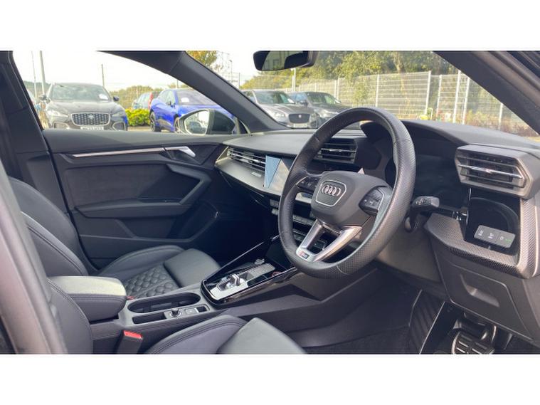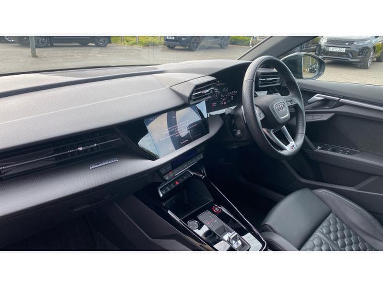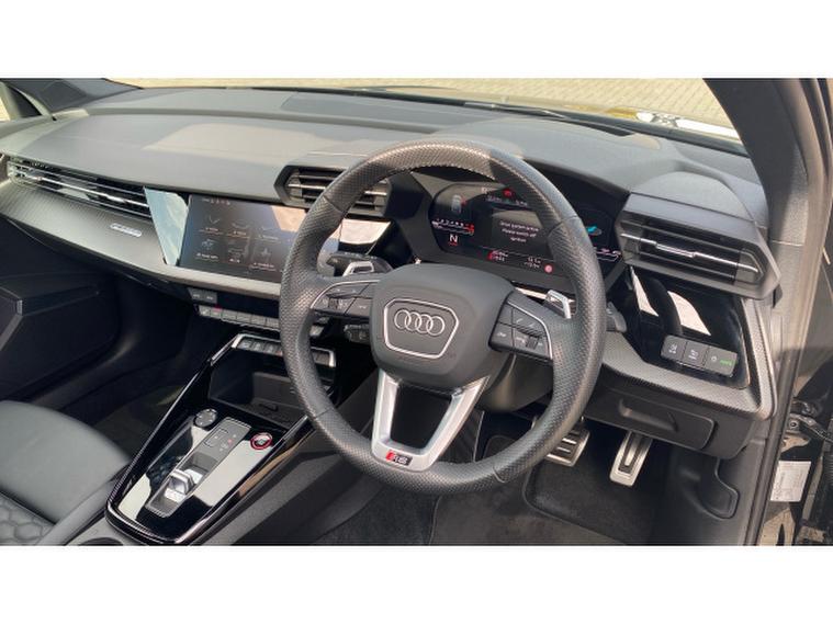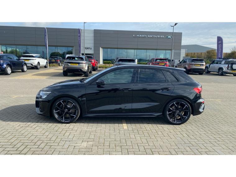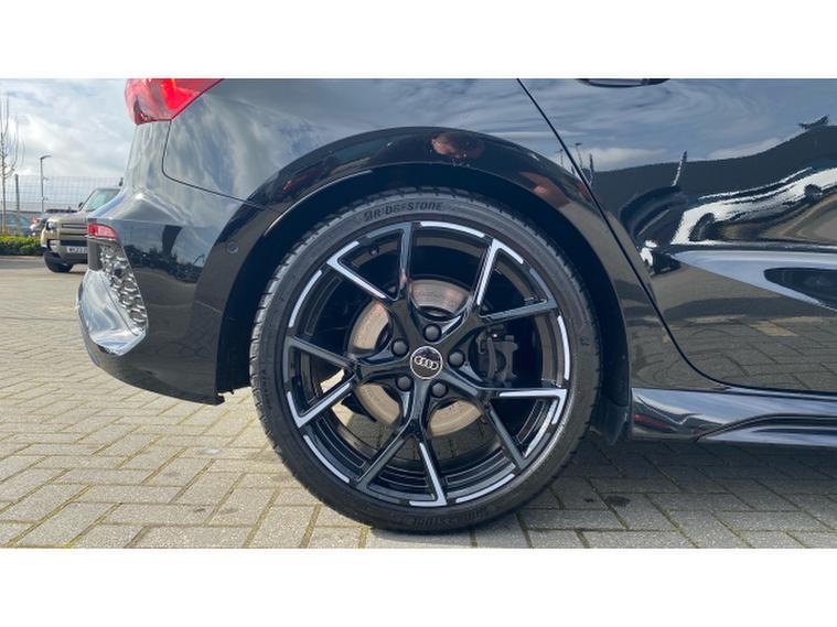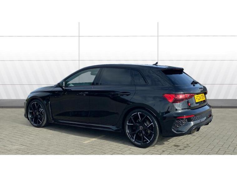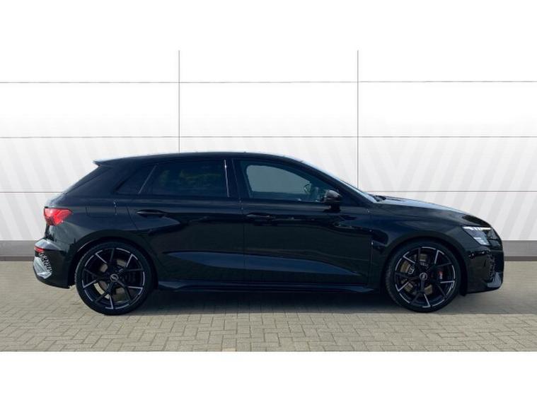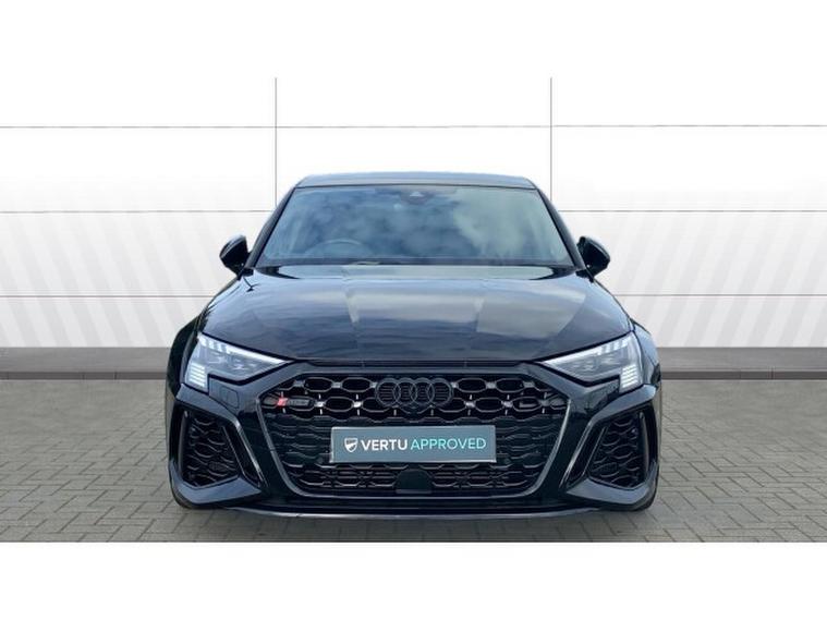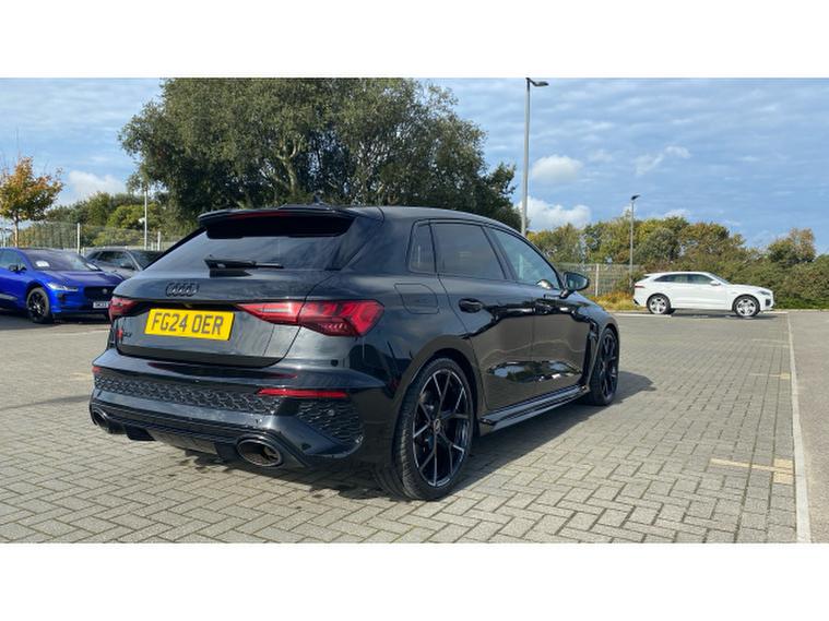Audi RS3 RS 3 TFSI Quattro Vorsprung 5dr S Tronic Petrol Hatchback, , Vertu JLR Truro are proud to offer this stunning Vertu Approved Used 2024 Audi RS 3 Sportback RS 3 TFSI Quattro Vorsprung 5dr S Tronic, finished in striking Mythos Black Metallic with Black RS Sport seats. Combining high-performance engineering with everyday usability, the RS 3 delivers exhilarating power, sharp handling, and quattro all-wheel-drive confidence. Powered by a 2.5-litre turbocharged TFSI engine paired with S Tronic automatic transmission, it offers thrilling performance while maintaining precision and control.