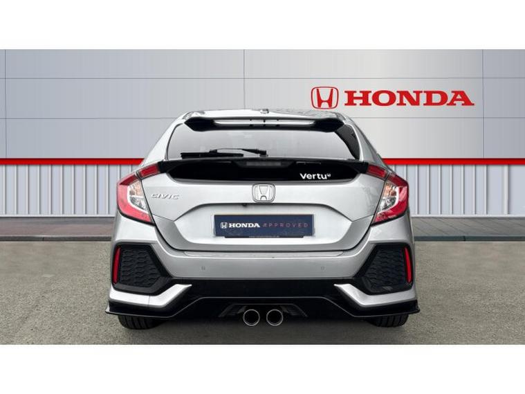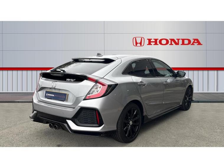 Honda Civic 1.5 VTEC Turbo Sport Plus 5dr Petrol Hatchback, , Finished in the striking Lunar Silver Metallic, this 2019 Honda Civic 1.5 VTEC Turbo Sport Plusis a hatchback that blends performance, technology, and stylish upgrades in one impressive package. With its upgraded 18-inch alloy wheels, sleek Black Line Pack, colour-coded side body protectors, and desirable opening panoramic roof, this Civic is every bit as eye-catching as it is enjoyable to drive. Powered by Hondas lively 1.5 VTEC Turbo petrol engine, the Civic delivers strong, responsive performance while remaining efficient and refined. Its finely tuned suspension and sharp handling give it a sporty, engaging feel on twisting roads, yet it remains smooth and composed on the motorway. Inside, the cabin is spacious, modern, and packed with features. The panoramic opening rooffills the interior with natural light and fresh air, while heated front sport seatsand dual-zone climate controlensure comfort on every journey. The Honda CONNECT infotainment systemwith satellite navigation, Apple CarPlay, and Android Autokeeps you connected, while the premium audio systemprovides crisp, immersive sound. Practicality meets peace of mind with front and rear parking sensorsand a reversing camera, making manoeuvres simple. Advanced safety features including adaptive cruise control, lane keep assist, and collision mitigation brakinggive you complete reassurance on every drive. Externally, the Civics bold design is elevated by the 18-inch alloy wheelsand styling from the Black Line Pack, with colour-coded side body protectorsadding a smart finishing touch. Its a car that looks just as dynamic as it feels. At Vertu Honda Plymouth, every car we sell is carefully prepared and inspected by our trained technicians, so you can drive away with confidence. We offer part-exchange, nationwide delivery, and are always happy to provide a personalised video walkaround so you can explore the car before visiting.
