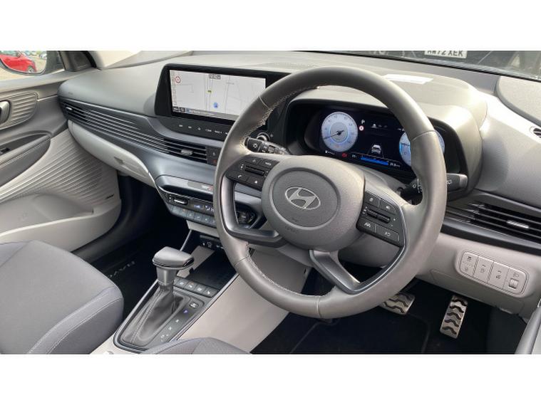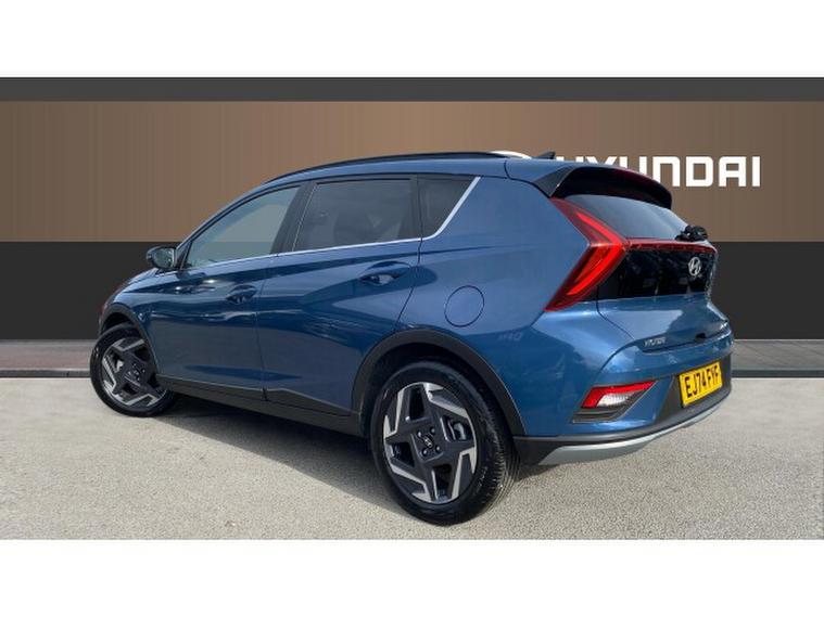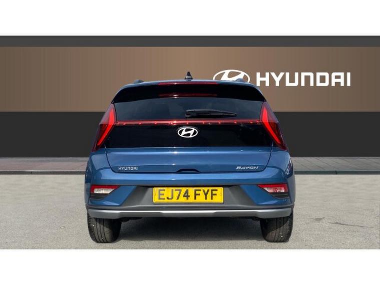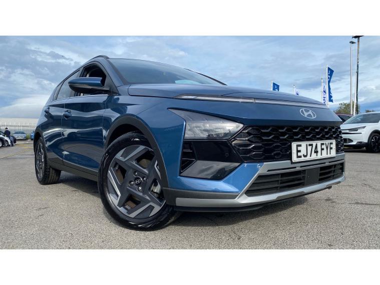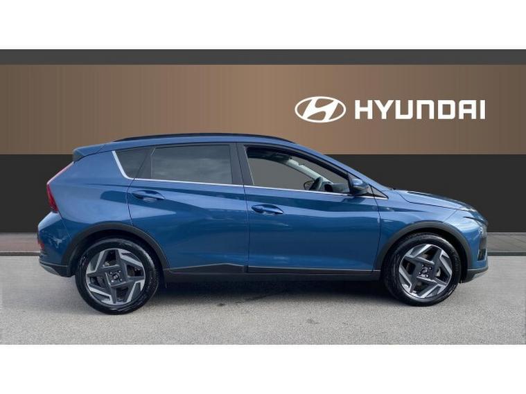 Hyundai BAYON 1.0 TGDi Ultimate 5dr DCT Petrol Hatchback, , The Hyundai BAYON 1.0 TGDi Ultimate 5dr DCT Petrol Hatchback is a top-spec compact crossover that combines eye-catching design, premium features, and excellent fuel efficiency. This striking model, finished in a vibrant blue and registered on a 24/74 plate, has just 3, 944 miles on the clockmaking it an exceptional nearly-new vehicle. Under the bonnet, it features a 1.0-litre turbocharged petrol engine paired with a smooth 7-speed Dual Clutch Transmission (DCT), delivering a responsive yet economical drive thats perfect for both urban journeys and longer road trips. As the range-topping Ultimate trim, it comes packed with premium equipment including a 10.25 digital instrument cluster, touchscreen infotainment with satellite navigation, Apple CarPlay and Android Auto, wireless phone charging, heated front seats and heated steering wheel, climate control, keyless entry with push-button start, and full LED headlights. Safety is a key focus, with features like lane keep assist, blind spot detection, forward collision avoidance, and rear cross traffic alert included as standard. With its raised ride height, comfortable seating, and generous boot space, the BAYON is ideal for drivers who want SUV practicality in a compact hatchback body. Pop in here at Hyundai Peterlee to view and test drive this fantastic, low-mileage BAYON today.