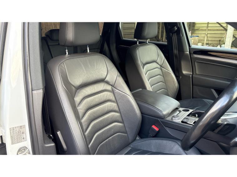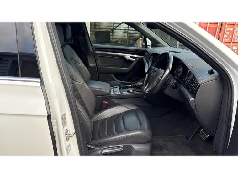 Finished in Pure White, the bold proportions are enhanced by the R-Line styling pack, giving the Touareg a road presence thats both sporty and sophisticated. Standard fit 20 Braga alloy wheels, privacy glass, R-Line bumpers, and silver roof rails accentuate its stature, while stainless steel details add a premium edge. A power‑, folding towbar with Trailer Assist ensures this Touareg is as practical as it is stylish.