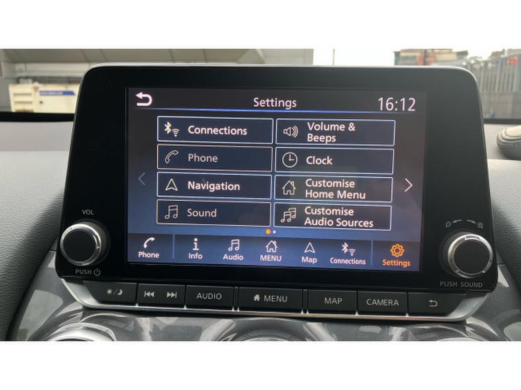 Technology is a highlight of this model, featuring NissanConnect with an 8-inch touchscreen infotainment system that includes satellite navigation, Apple CarPlay, Android Auto, Bluetooth connectivity, and DAB digital radio. The system is intuitive and easy to use, keeping you connected and entertained on every journey. Additional comforts include dual-zone climate control, keyless entry and start, and a multifunction steering wheel.