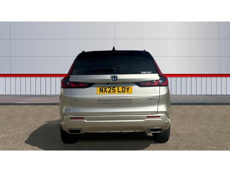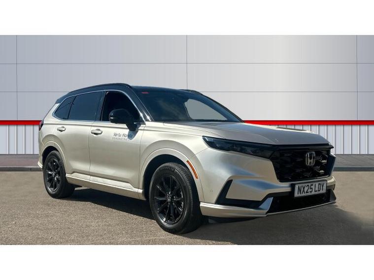 Honda CR-V 2.0 ePHEV Advance Tech 5dr eCVT Estate, , The 2025 Honda CR-V Estate 2.0 ePHEV Advance Tech finished in metallic gold blends elegant styling with cutting-edge plug-in hybrid technology and outstanding practicality. Its warm golden paintwork accentuates the sculpted body lines, flared wheel arches, and bold front grille, giving the SUV a premium presence. Sleek LED headlights, a distinctive daytime running light signature, and chrome exterior details add to the sophisticated look, while the slightly raised stance and 19-inch alloy wheels convey strength and capability.