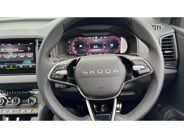 Inside, this Karoq is all about comfort and sophistication. Youll find sports seats, a digital cockpit, ambient lighting, and premium finishes throughout. Its spacious, flexible, and built with families in mind with plenty of room for passengers and all their gear.