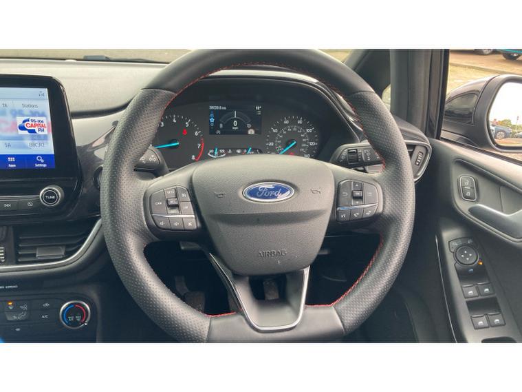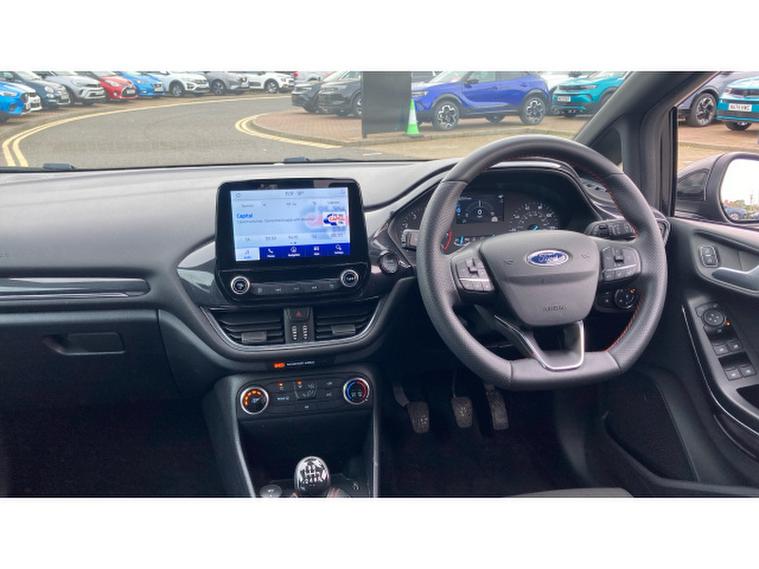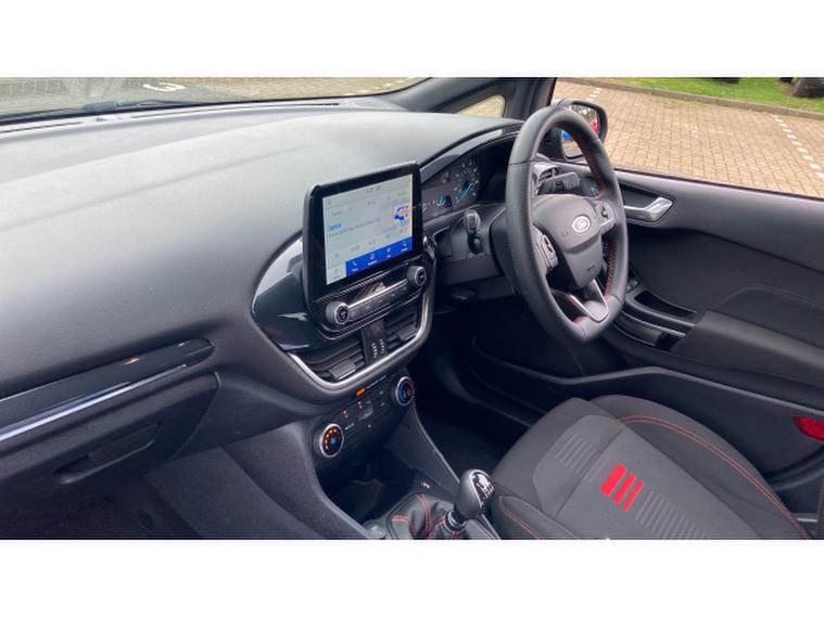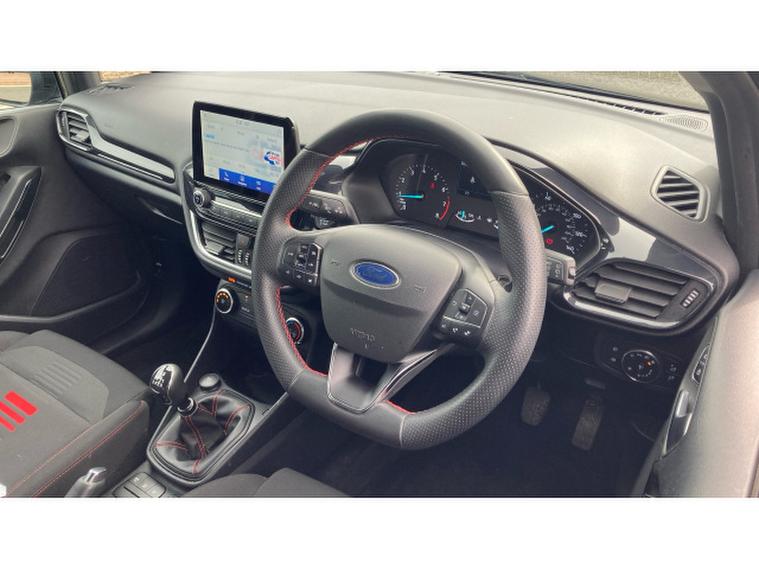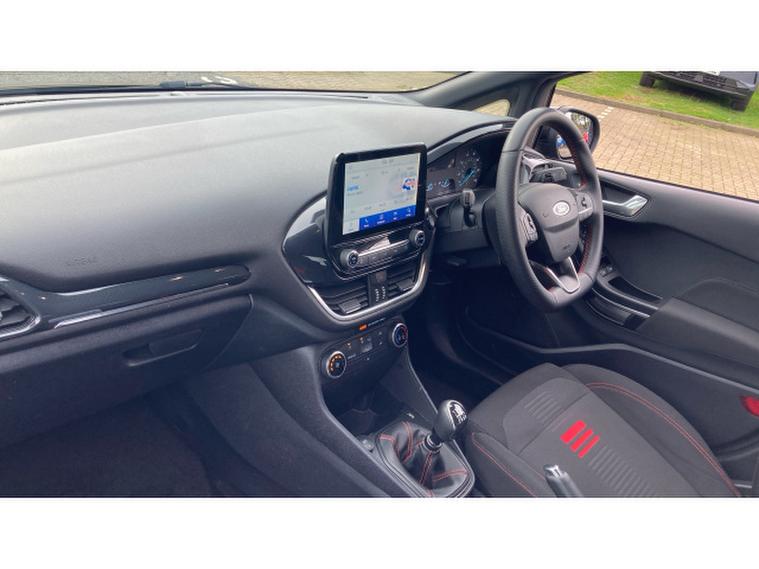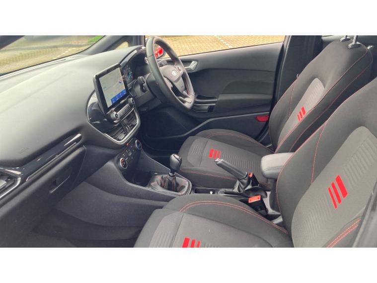 Ford Fiesta 1.0 EcoBoost Hybrid mHEV 125 ST-Line Edition 5dr Petrol Hatchback, , The 2022 Ford Fiesta Hatchback 1.0 EcoBoost Hybrid mHEV 125 ST-Line Edition 5dr combines sporty design with efficient, modern performance. Its 1.0-litre EcoBoost mild hybrid engine delivers responsive power and improved fuel economy, ideal for both urban and longer journeys. The ST-Line Edition features a dynamic exterior with 17-inch alloy wheels, a distinctive grille, and LED daytime running lights, while the interior offers sports seats, a leather-trimmed steering wheel, and a touchscreen infotainment system with smartphone connectivity. Advanced driver assistance systems, including lane-keeping assist and parking sensors, enhance safety and confidence. Compact and agile, the Fiesta is easy to manoeuvre and park, while the well-designed cabin provides comfort and practicality. Combining efficiency, technology, and sporty styling, the Fiesta ST-Line Edition offers an engaging, economical, and enjoyable driving experience.