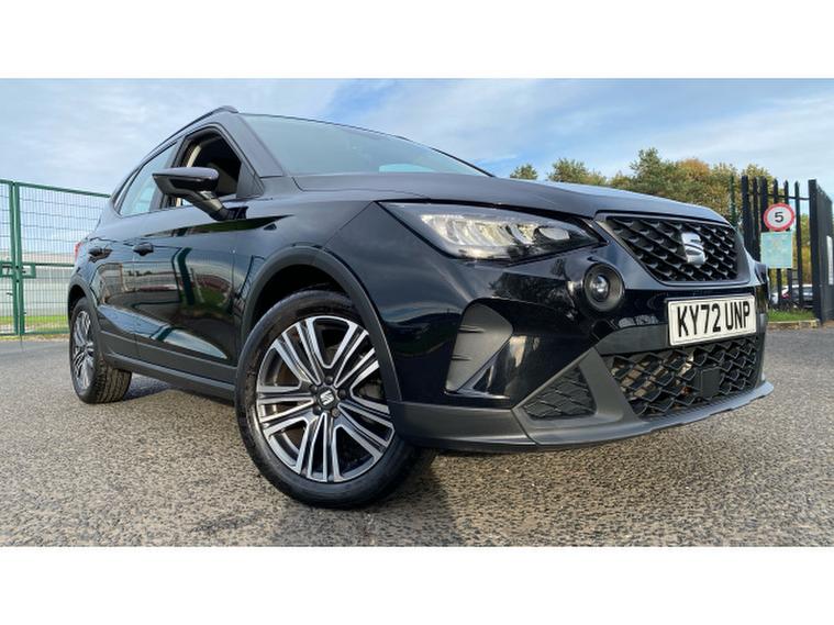 SEAT Arona 1.0 TSI SE Technology 5dr Petrol Hatchback, , The SEAT Arona 1.0 TSI SE Technology 5dr Petrol Hatchback is a stylish and practical compact SUV that perfectly blends efficiency with modern features. Finished in sleek black and registered on a 22/72 plate, this model has only 4, 751 miles on the clock, making it an excellent nearly-new vehicle. Powered by a 1.0-litre turbocharged petrol engine, the Arona delivers a smooth and efficient driving experience, ideal for city driving and longer journeys alike. The SE Technology trim offers a great specification, including a 6.5-inch touchscreen infotainment system with Bluetooth connectivity, Apple CarPlay and Android Auto compatibility, and a DAB digital radio for entertainment on the go. The interior is spacious and practical, with comfortable seating for five and a flexible boot that offers plenty of room for everyday needs. Safety is well covered with features such as multiple airbags, electronic stability control, hill hold assist, and a tyre pressure monitoring system. The Aronas compact size, elevated driving position, and sharp styling make it a popular choice for drivers who want the benefits of an SUV in a city-friendly package. If youre looking for a low-mileage, well-equipped, and stylish compact SUV, this SEAT Arona is worth a look. Pop in today at Hyundai Peterlee to see it for yourself.