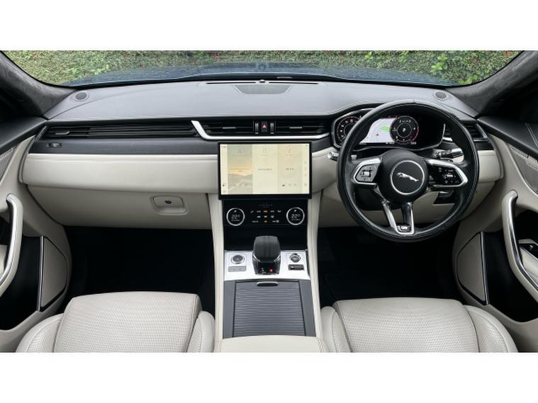 Externally, the Bluefire Metallic paint enhances the F-Pace's athletic stance, complemented by sleek alloy wheels and signature Jaguar styling cues. Inside, the cabin exudes refinement with heated seats, dual-zone climate control, and cutting-edge connectivity features, ensuring comfort and convenience on every journey.