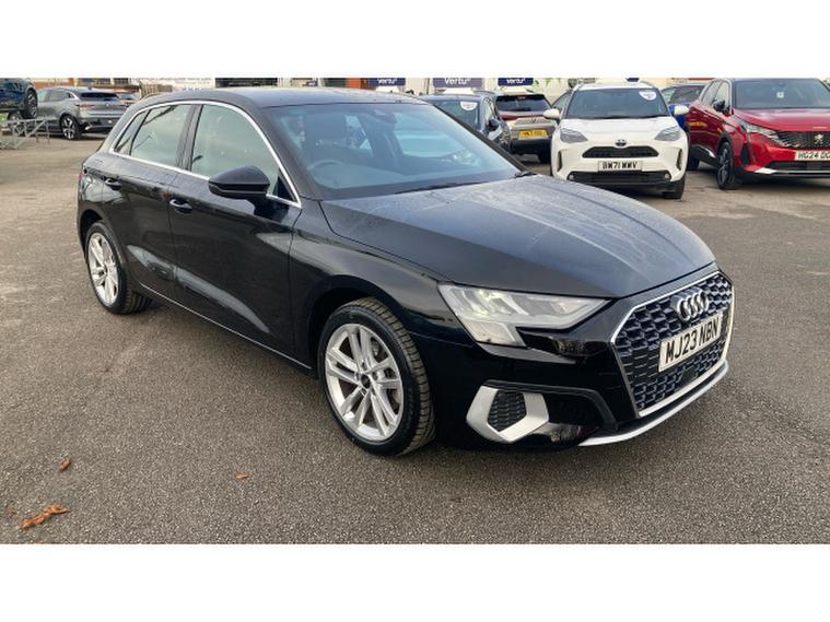 Audi A3 30 TFSI Sport 5dr Petrol Hatchback, , Now heres a slice of luxury for you to appreciate. This stunning 2023 Audi A3 Sportback 30 TFSI Sport in Black has just arrived with us at Peugeot Derby, and she perfectly combines refined design, advanced technology and impressive efficiency. Her sleek black paintwork is in immaculate condition, her alloy wheels are pristine, and her interior remains beautifully presented with Audis signature attention to detail. Since she was first registered on 24/03/2023, she has covered just 24, 883 miles comfortably below average for her age, showing how well she has been maintained. Being the Sport model, she comes with an excellent specification including Satellite Navigation, Front and Rear Parking Sensors, Bluetooth Connectivity, Digital Cockpit, Cruise Control, DAB Radio, Dual-Zone Climate Control, Auto Lights and Keyless Start offering the perfect blend of comfort, technology and performance. With all this in mind, we can only describe her as sensational value for money and she certainly wont be hanging around, so please dont hesitate to contact the team at Peugeot Derby to arrange your unforgettable test drive today. We are located off Sir Frank Whittle Road in Derby, the best postcode to use is DE21 4RX. We look forward to seeing you soon!
