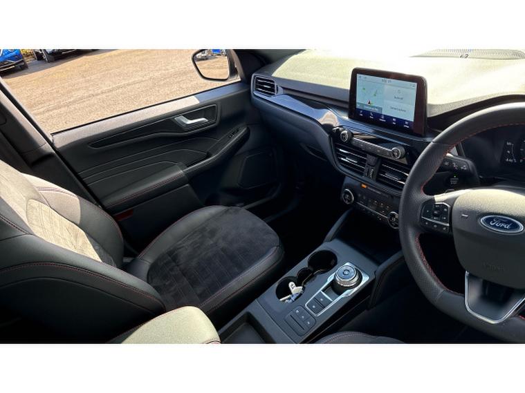 Inside, the cabin is a showcase of comfort and technology. Premium materials, heated front seats, and a panoramic roof create a luxurious environment, while the advanced SYNC 3 infotainment system offers satellite navigation, Apple CarPlay and Android Auto integration, and a crisp touchscreen interface. The ST-Line X also includes a premium B&O sound system for an immersive audio experience.