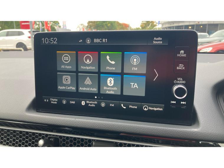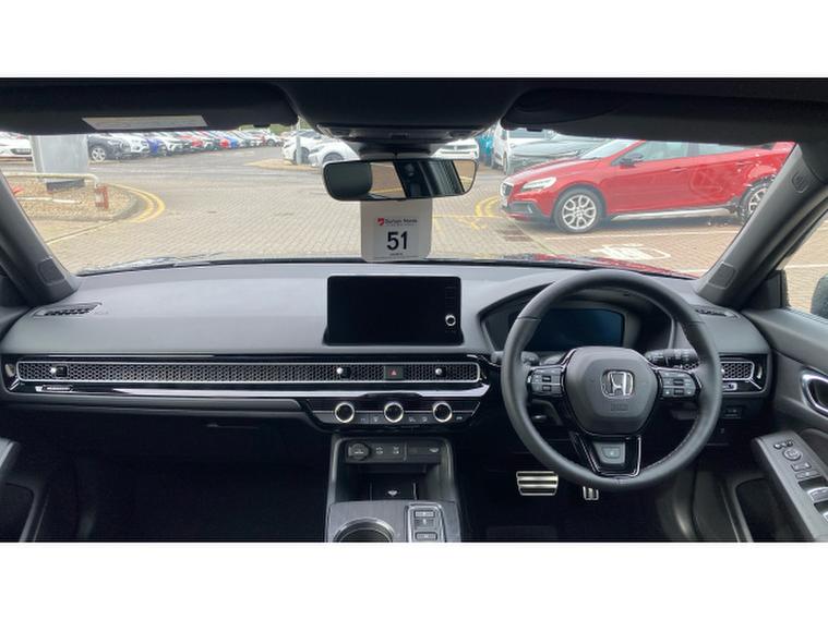 Powered by Hondas 2.0 e:HEV self-charging hybrid system paired with a smooth CVT automatic gearbox, this Civic offers responsive acceleration, impressive fuel economy, and low running costs, ideal for both urban driving and longer journeys.