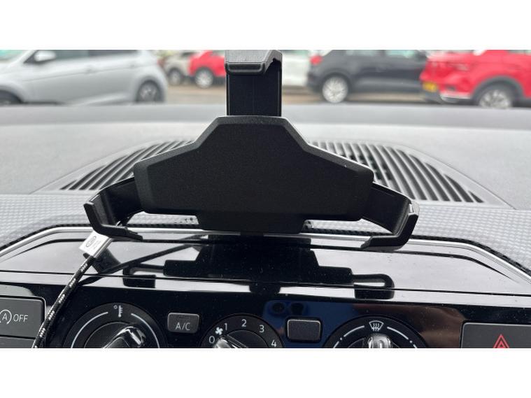 Inside, the cabin is thoughtfully detailed with dark grey Fusion cloth trim, a black dashboard, and leather‑, wrapped features including the multi-function steering wheel, gear knob, and handbrake. Comfort is enhanced by heated front seats and heated, electrically adjustable mirrors thanks to the Winter Pack, while practicality benefits from a fold‑, flat passenger seat and through‑, loading capability.