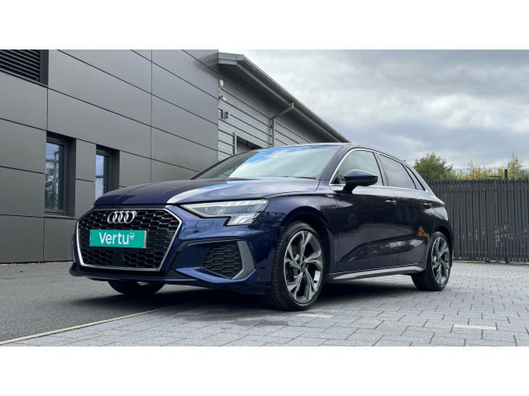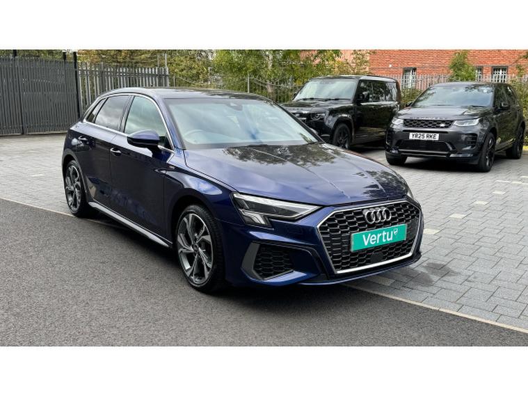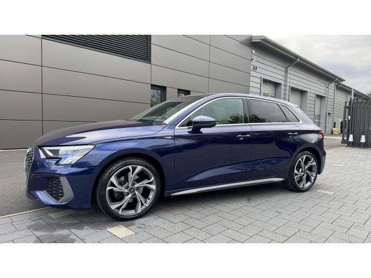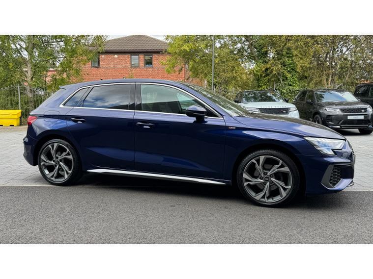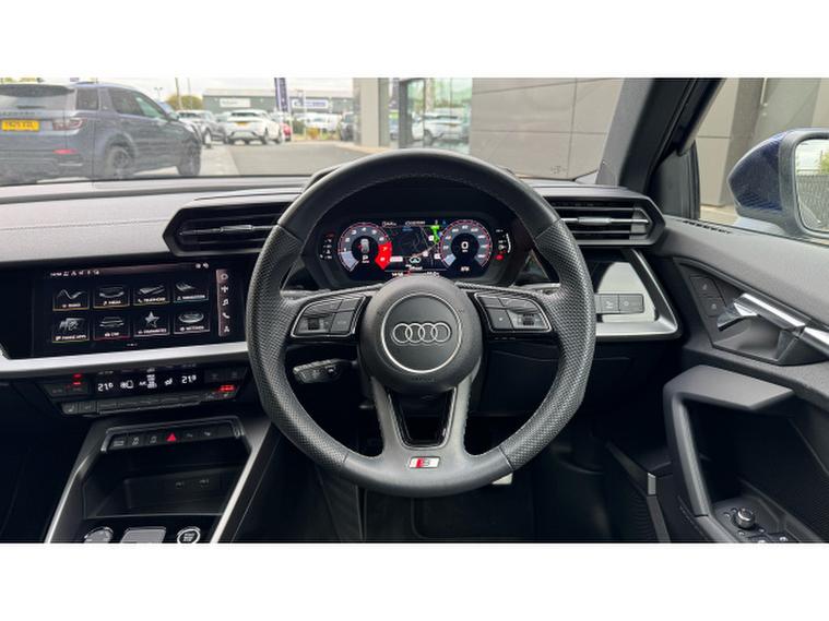 Audi A3 35 TDI S Line 5dr S Tronic [Comfort+Sound] Diesel Hatchback, , This Striking Vehicle is presented in the sporty Navarra Blue Metallic complimented with S-Line Ebony Leather Interior
