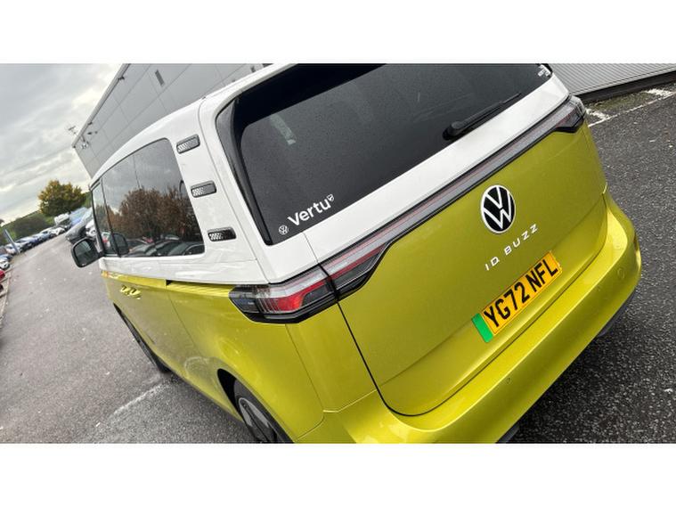 Volkswagen ID. Buzz 150kW Style Pro 77kWh 5dr Auto Electric Estate, , Offered for sale is this stunning 2022 (72 plate) Volkswagen ID. Buzz Life, finished in the highly desirable Candy White and Lime Yellow two-tone paintwork. With just 15, 602 miles on the clock and a fresh service completed by ourselves at Harrogate Volkswagen, this example is in great condition throughout and ready to drive away.