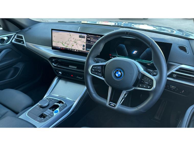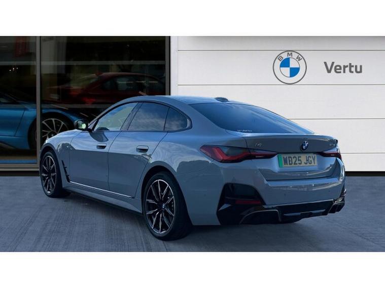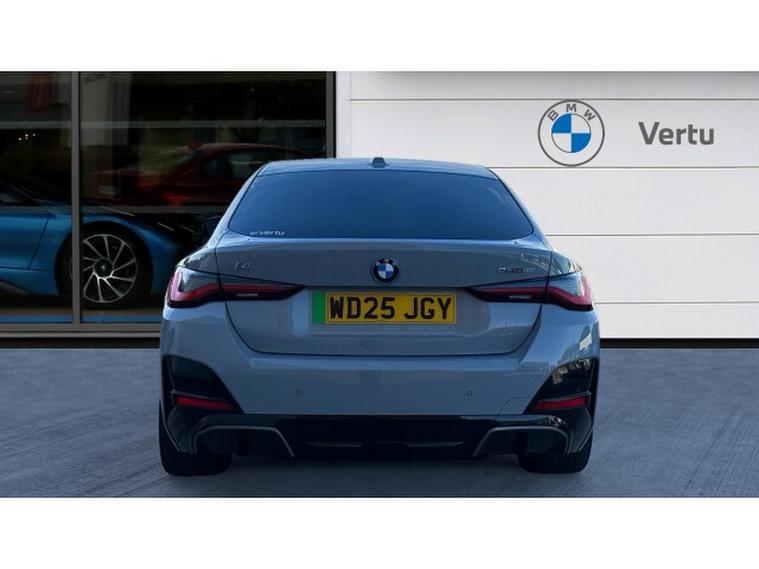 BMW i4 250kW eDrive40 M Sport 83.9kWh 5dr Auto Electric Hatchback, , Available now is a superb 2025 BMW i4 eDrive40 M Sport, presented in the striking Brooklyn Grey exterior with a refined interior finished in Black Vernasca Leather with Blue Stitching. This fully electric Gran Coup delivers the perfect blend of cutting-edge technology, dynamic performance and everyday practicality, making it an outstanding choice for drivers seeking both excitement and efficiency. When you buy from Vertu BMW Exeter, you enjoy complete peace of mind, as every Approved Used BMW comes with 12 Months BMW Approved Warranty, 12 Months BMW Roadside Assistance, 12 Months MOT and a full service history. Each car is meticulously checked and maintained by our manufacturer-trained technicians, ensuring the highest standards of quality, safety and reliability. Choosing Vertu BMW Exeter means not only driving away in a premium vehicle but also benefiting from expert advice, ongoing support and outstanding customer care. Our dedicated team is always on hand to assist, and we would be delighted to provide you with a personalised video presentation of this BMW i4, tailored to your needs. We will happily answer any questions you may have and give you a closer look at the cars design, features and performance. This BMW i4 eDrive40 M Sport is equipped with a wealth of desirable features to enhance your driving experience, including heated front seats for added comfort, a convenient Parking Assistant to make manoeuvring effortless, and an electric boot lid that provides easy access at the touch of a button. Contact Vertu BMW Exeter today and discover more about this exceptional all-electric BMW.
