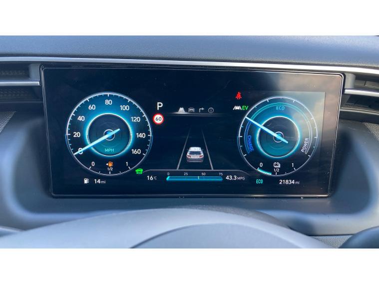 Hyundai TUCSON 1.6 TGDi Hybrid 230 Ultimate 5dr 2WD Auto Hybrid Estate, , This 2022 Hyundai TUCSON h T-GDi Ultimate is a remarkable find, boasting exceptionally low mileage for its age at just 21, 826 miles. As a Euro 6 compliant model, it offers an efficient 1.6 litre petrol hybrid engine, combining smooth performance with modern technology. The Ultimate trim level ensures you experience the very best of the TUCSON's capabilities, including convenient features like a wireless phone charging pad and smart adaptive cruise control with stop and go functionality, making longer journeys more relaxed. For added comfort during colder months, the heated steering wheel provides a welcome touch.