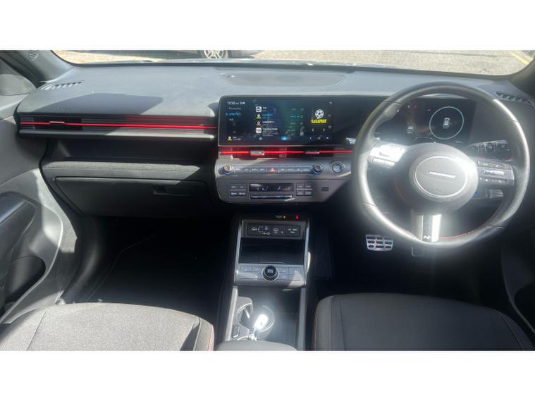 Hyundai KONA 1.6 Hybrid 129 N Line 5dr DCT Hybrid Hatchback, , This 2025 Hyundai KONA h GDi N Line offers an exceptional blend of style and efficiency, making it a standout choice. This particular model, registered in 2025, features the N Line trim and is powered by a 1.6 litre petrol hybrid engine, meeting Euro 6 emission standards. Inside, you'll find a host of convenient features designed to enhance your driving experience, including Bluetooth connectivity with voice recognition, a heated steering wheel for those colder mornings, a wireless phone charging pad, and automatic headlights that activate with a dusk sensor.